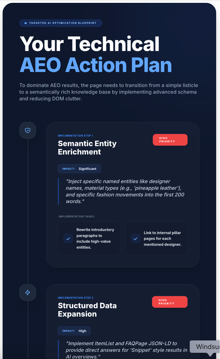 Act as a World-Class AEO (Answer Engine Optimization) & SEO Architect.