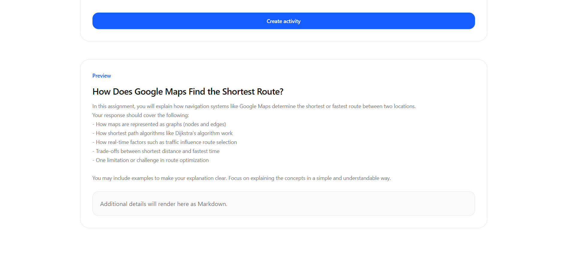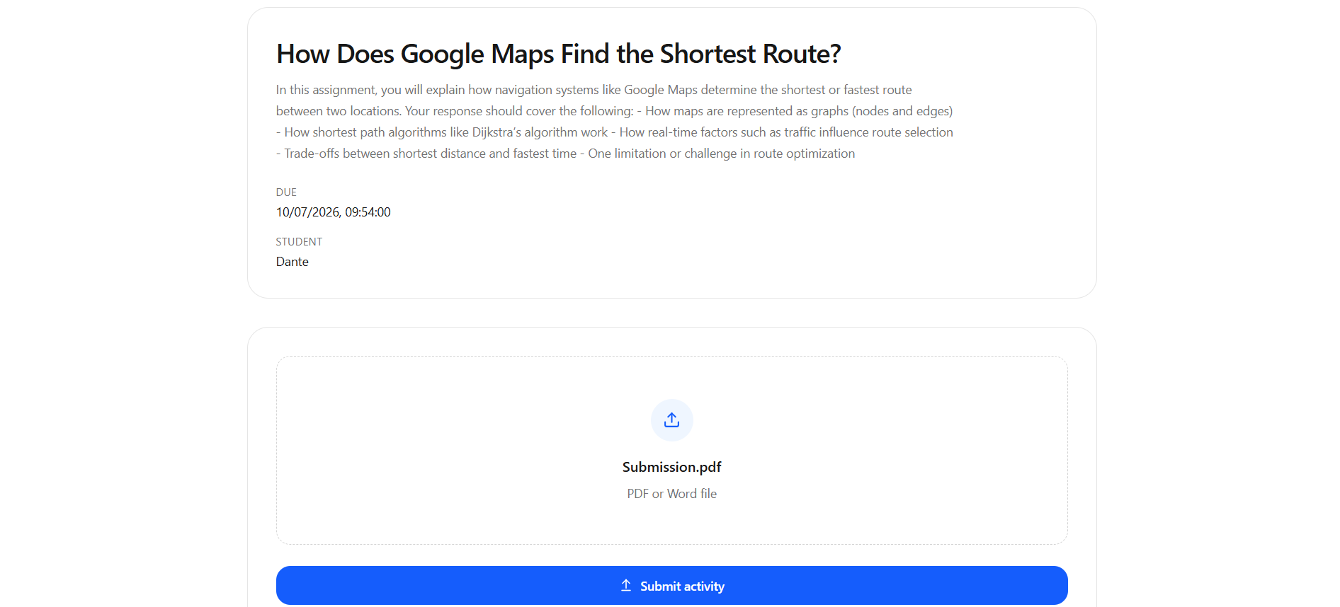 - Students submit their work (PDF/Doc)