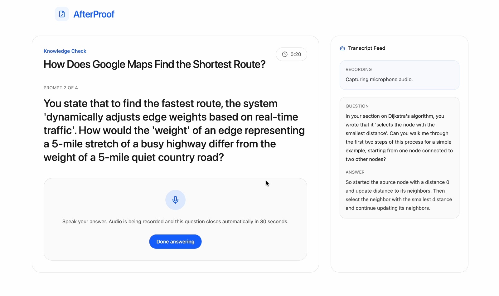 AfterProof transforms traditional assignments into interactive oral defenses powered by AI.
