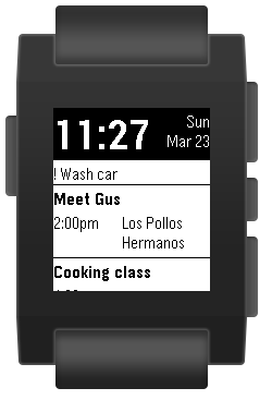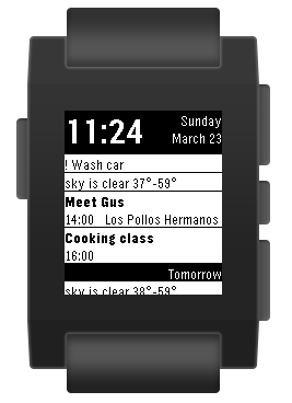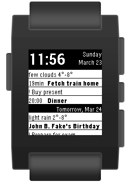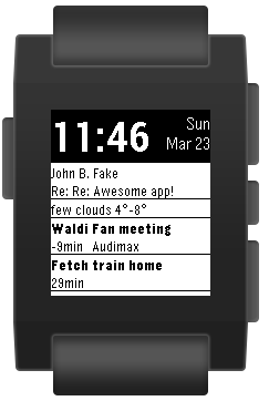 Your agenda (and more!) at a glance. Clean, simple, powerful, customizable, plugin-extendable. Delivers exactly the information you would expect from a smartwatch!