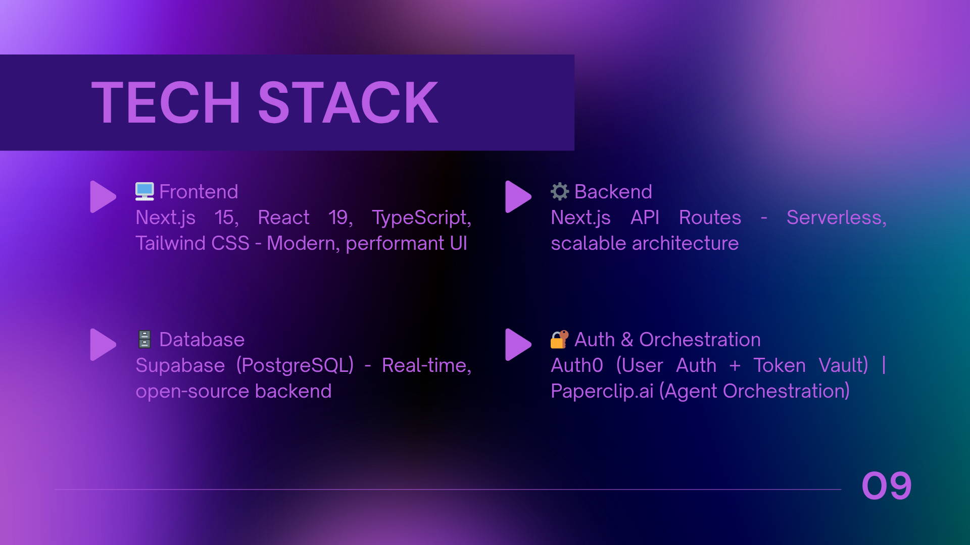 - Auth: Auth0 for user auth + Token Vault for secure credential injection