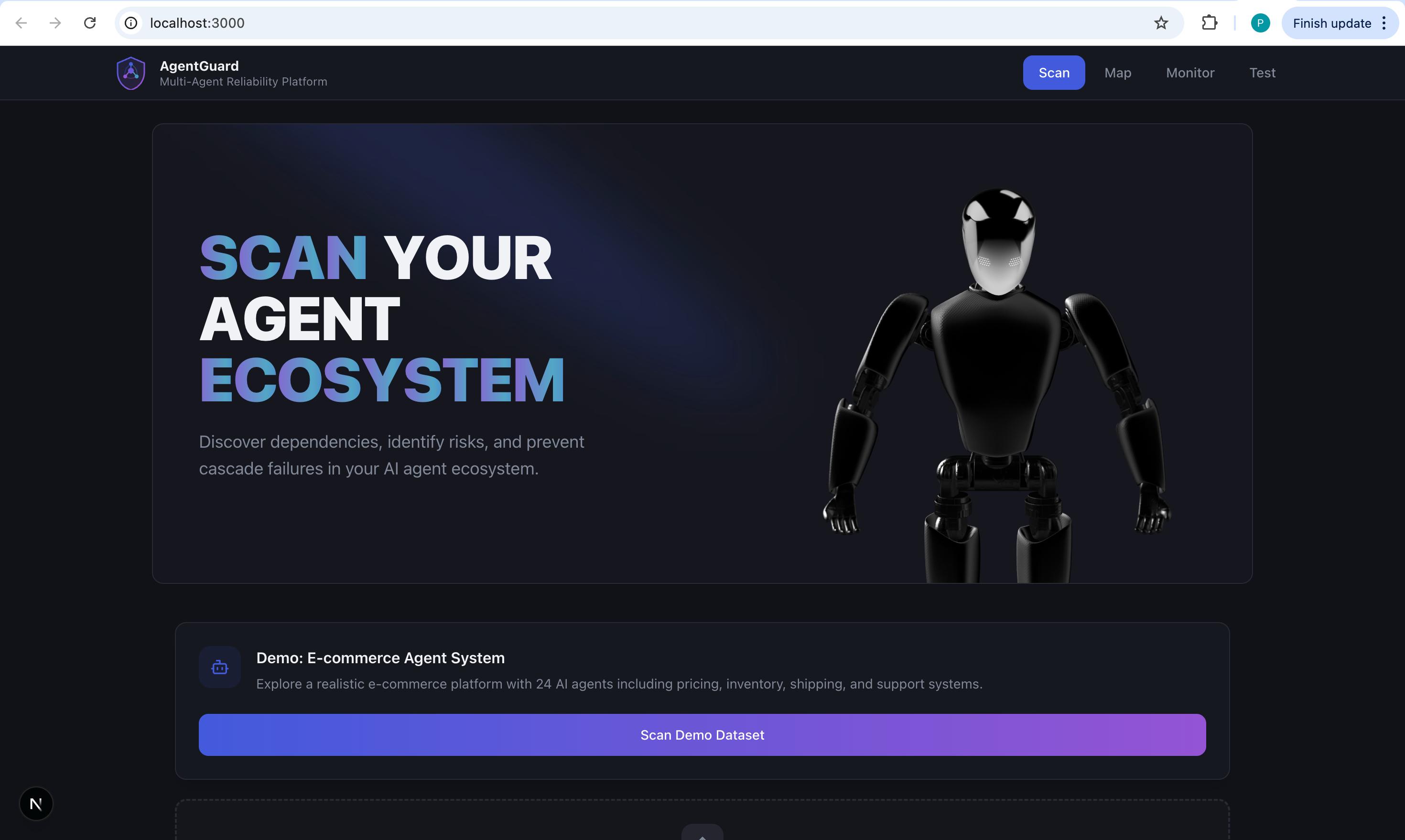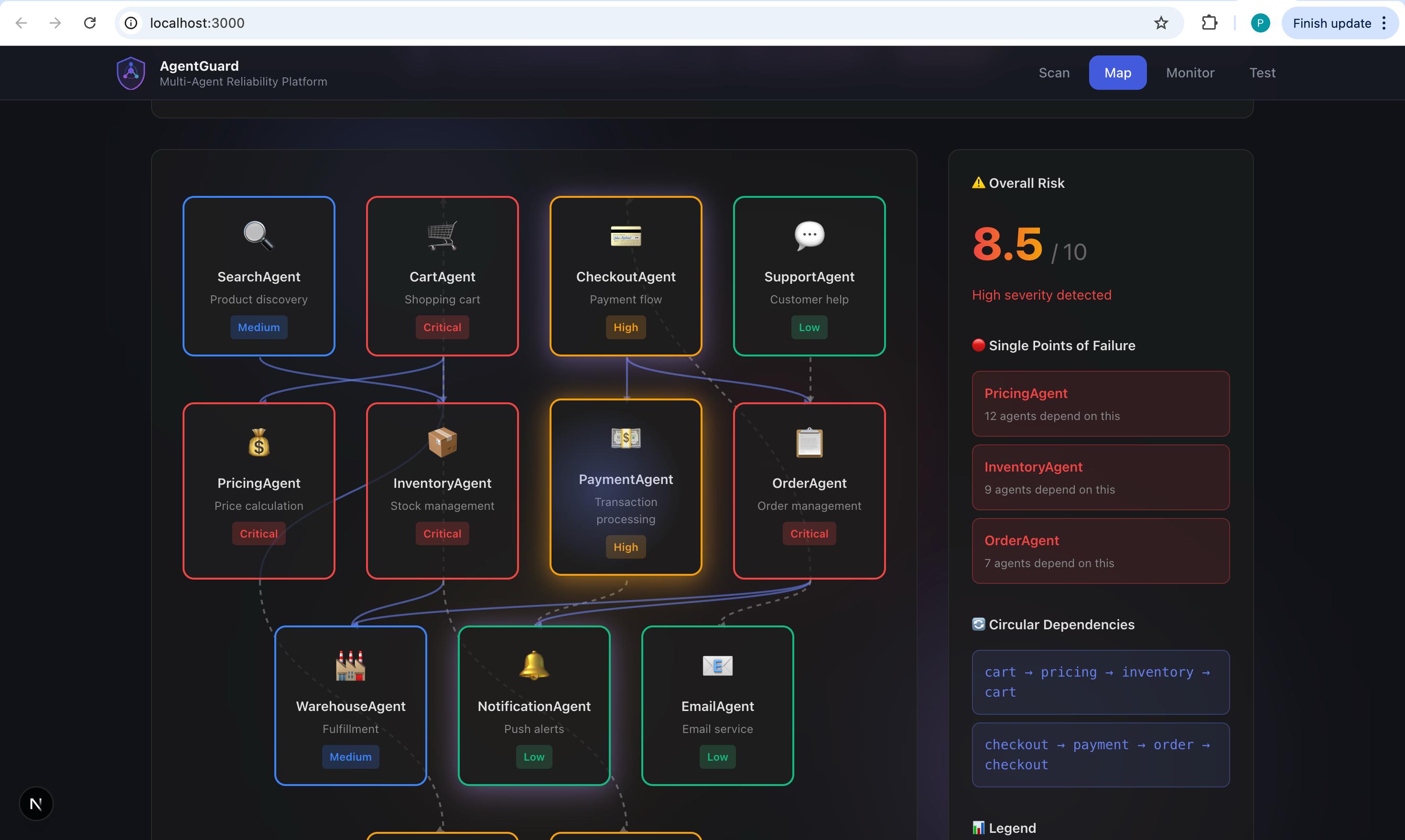 Modern AI systems don’t fail loudly at first — they fail quietly. A single agent slows down, a dependency behaves unexpectedly, and suddenly the entire ecosystem is at risk. By the time alerts trigger, the damage is already done. AgentGuard was built to change that. This platform scans your entire AI agent ecosystem, maps hidden dependencies, and surfaces risks before they cascade into outages. Instead of reacting to incidents, AgentGuard helps teams see failure forming in advance. Each scan turns complex, interconnected agents into a clear reliability picture — showing where pressure points exist and which components matter most. With AgentGuard, reliability becomes proactive, not reactive. You’re no longer guessing which agent will fail next or why systems collapse under load. You’re preventing failures before users are affected. Because the strongest systems aren’t the ones that recover fastest — they’re the ones that never go down at all.