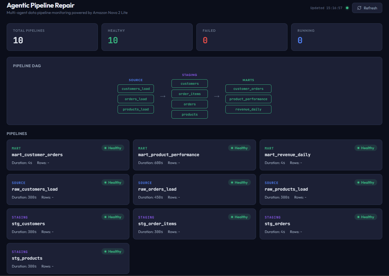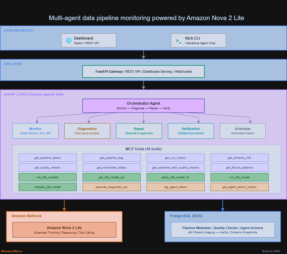 Nova 2 Lite's extended thinking is a game-changer for agentic systems. The model's ability to reason through complex dependency chains and generate syntactically correct SQL fixes exceeded my expectations. The Strands Agents SDK made multi-agent coordination surprisingly straightforward.