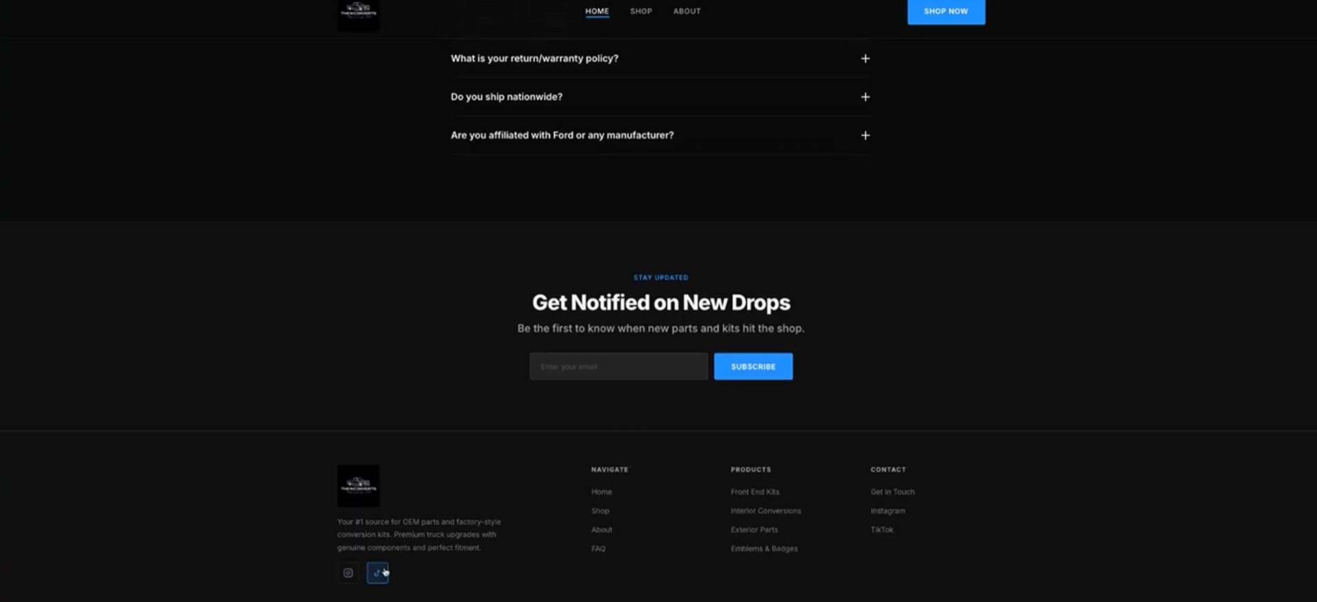 We developed the digital storefront and educational hub for Thewconverts, a startup that sources and sells genuine OEM truck parts. Our project focused on creating a high-conversion, premium e-commerce frontend designed specifically for automotive enthusiasts.