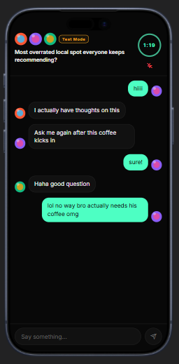 Nailing the Psychology of the 10-Minute Timer: We successfully engineered a system that mathematically diffuses the pressure of a 1-on-1 blind date (by requiring 3-4 people) and provides a guaranteed, socially acceptable exit strategy.