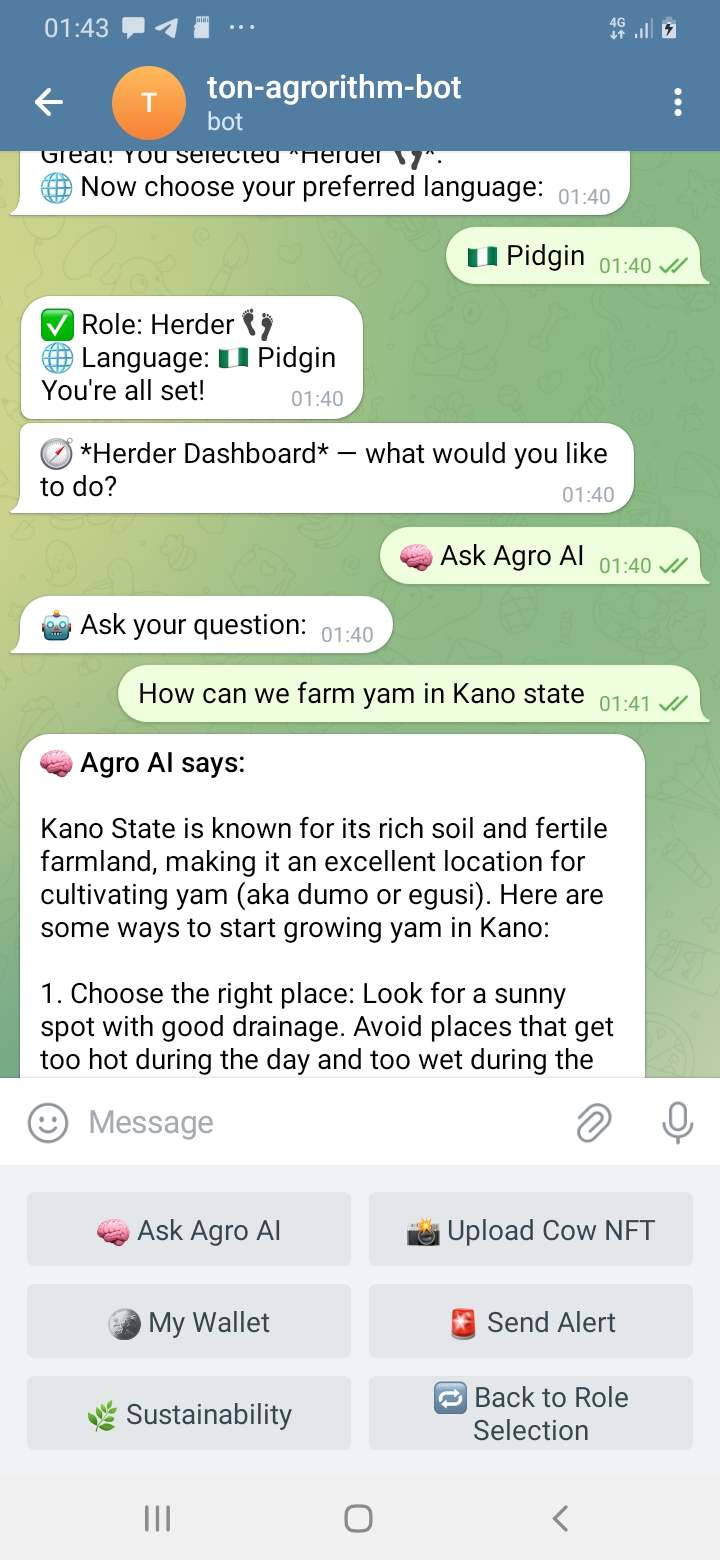 Partnerships with NGOs, improvement of AI as relates agentic alerts, expand the blockchain use to enable provision of loans and investments for herders and farmers using DEFI, expand in Nigeria and then Africa and the world at large.