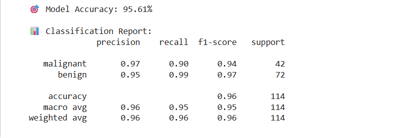 “Detailed classification report showing accuracy, precision, recall and F1-score of the XGBoost classifier.”