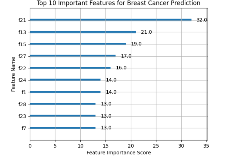 “Top influential medical features identified by the XGBoost model for tumor prediction.”