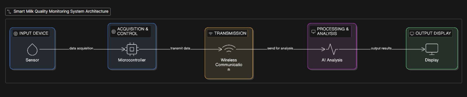 Visualization The final result is shown on a digital dashboard, enabling quick acceptance or rejection decisions at milk collection centers.