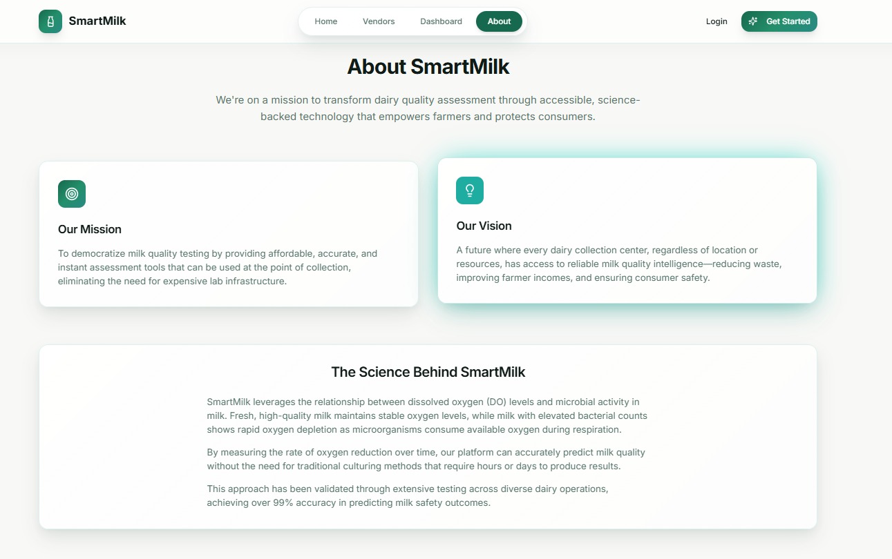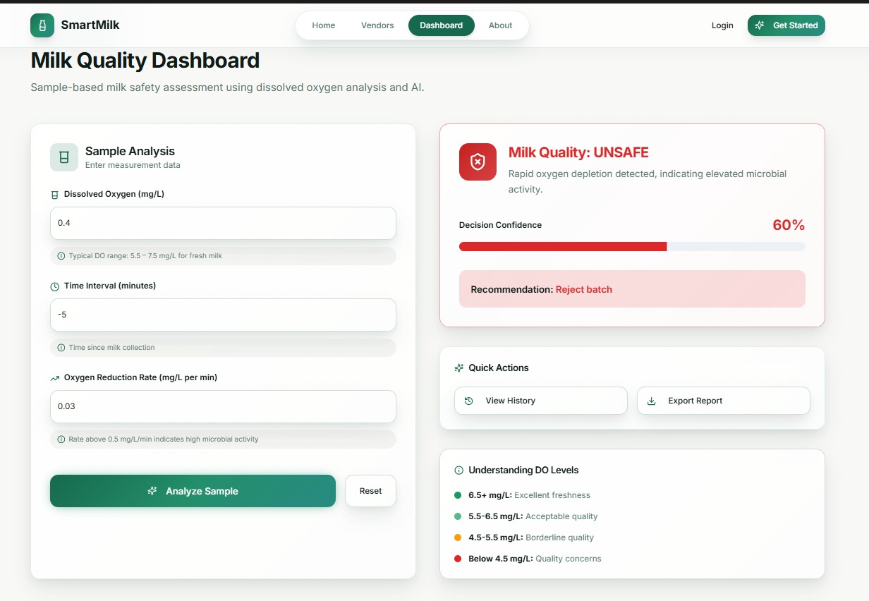 AI‑powered platform to verify milk quality using dissolved oxygen analysis before it reaches consumers.