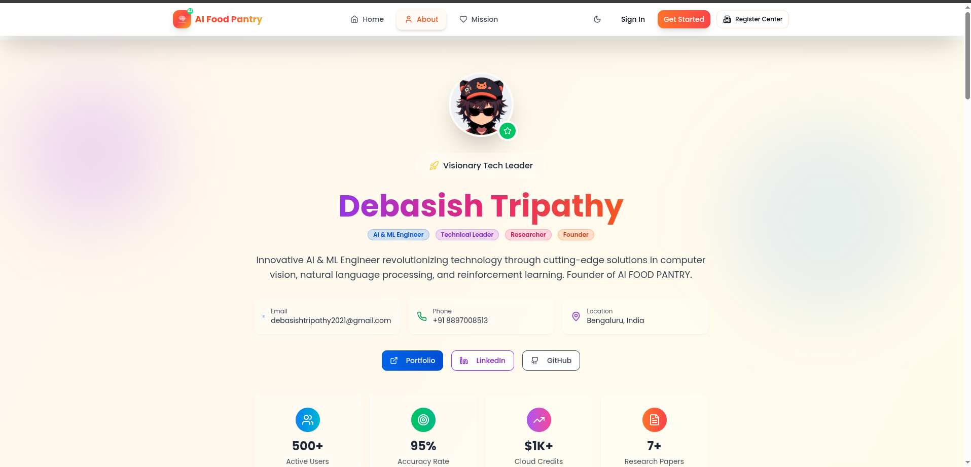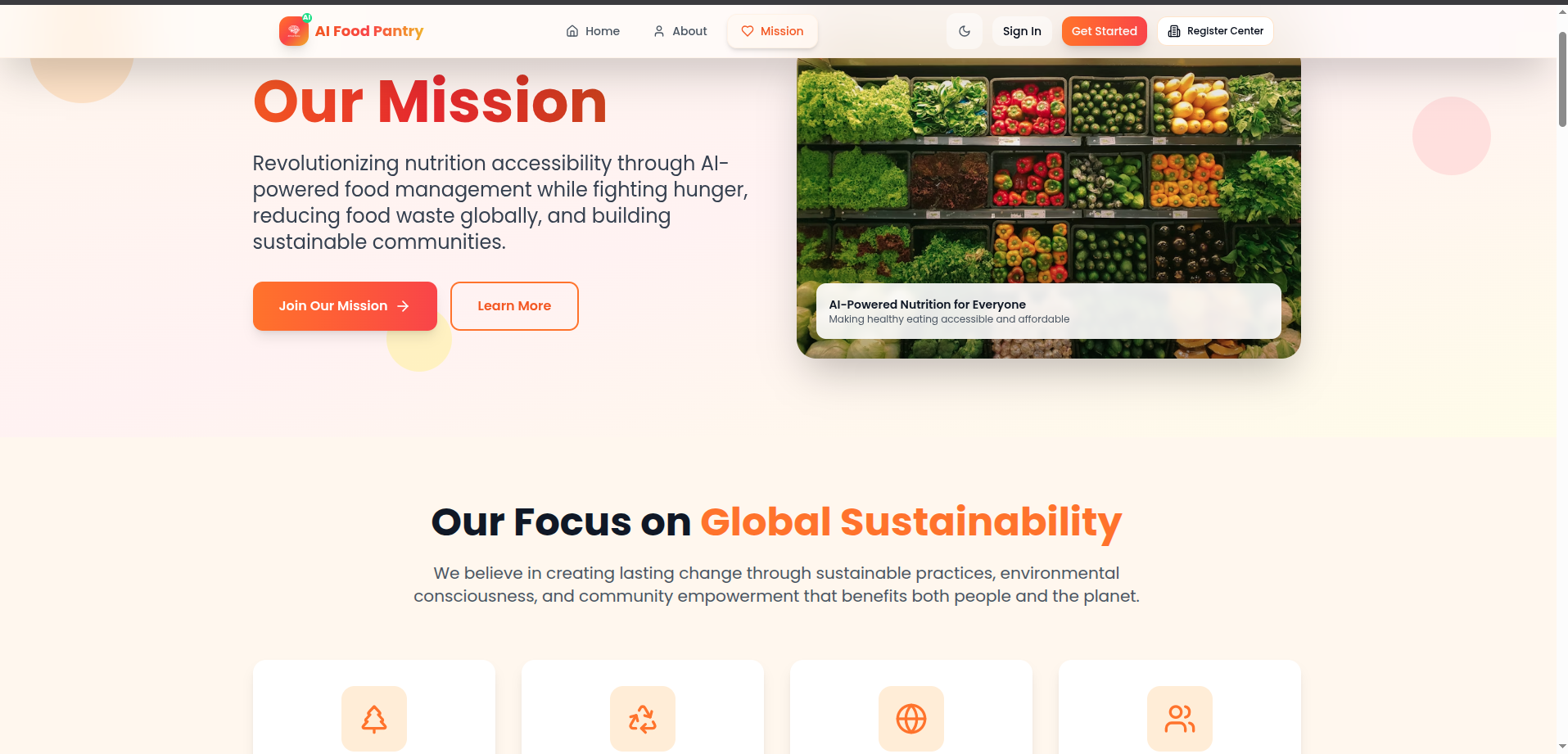 🔍 Smart Food Scanning: Computer vision identifies pantry items, reads expiration dates, and categorizes them instantly. 🍽️ Personalized Meal Planning: AI suggests recipes tailored to your dietary needs, allergies, culture, and available ingredients. 💬 Nutrition Guidance: Free, AI-generated meal analysis that replaces expensive nutritionist consultations. 🔔 Waste Reduction Alerts: ML-based expiration and usage reminders reduce spoilage and prevent overbuying. 🤝 Community Food Sharing: Connects users to local food banks and donation centers for seamless food redistribution. 📊 Impact Dashboards: Real-time tracking of CO₂ reduction, food savings, waste reduction, and SDG alignment. It’s more than a food app—it’s a smart food ecosystem designed for households, communities, and NGOs.