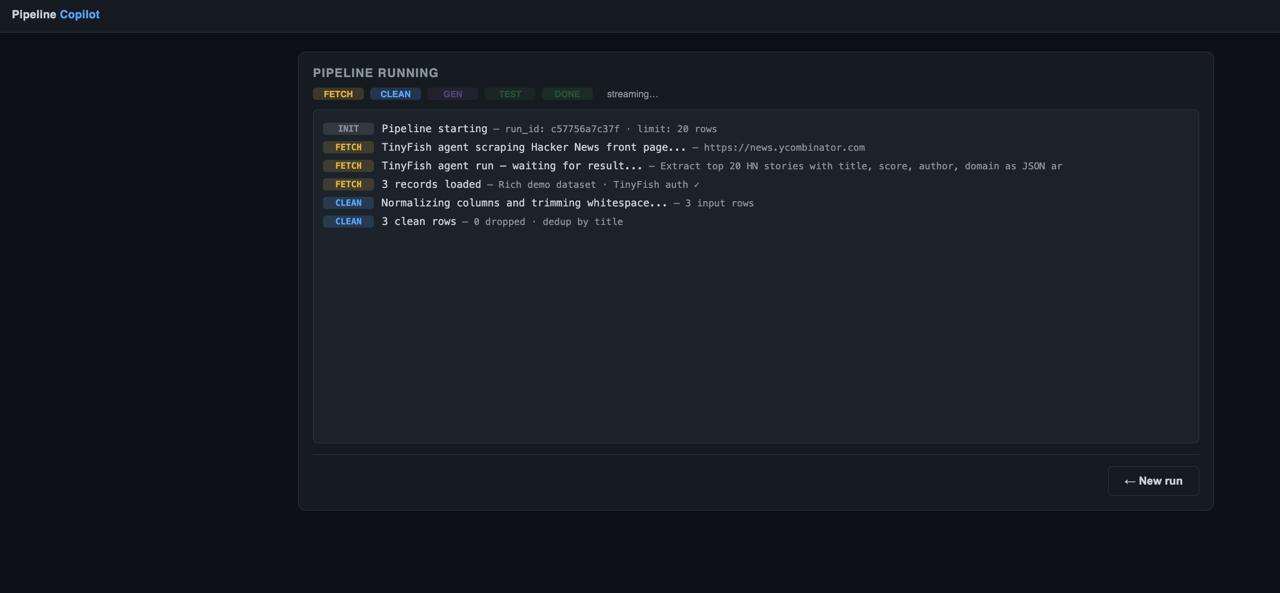 TinyFish Acts as the data ingestion layer. It is used as an intelligent web scraping agent to fetch structured data from sources like Y Combinator, Hacker News, and Product Hunt in real time.