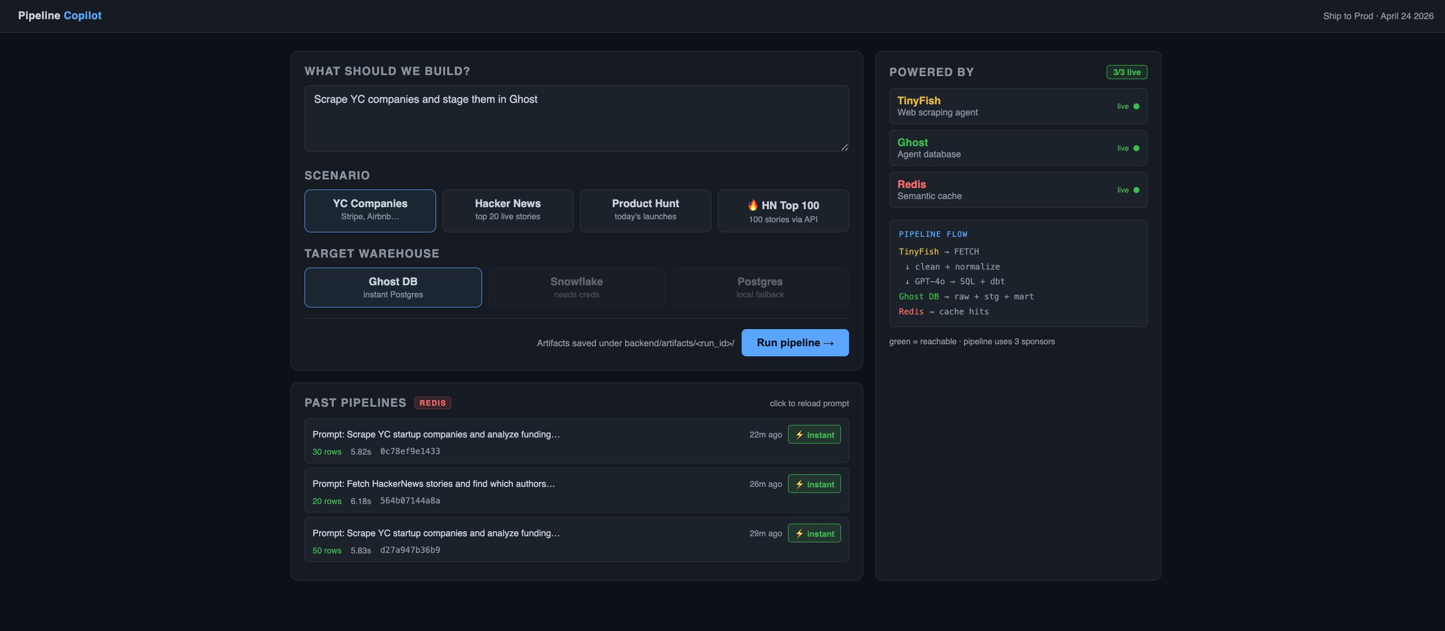 Pipeline Copilot is an AI-powered system that transforms a natural language prompt into a complete ETL pipeline.
