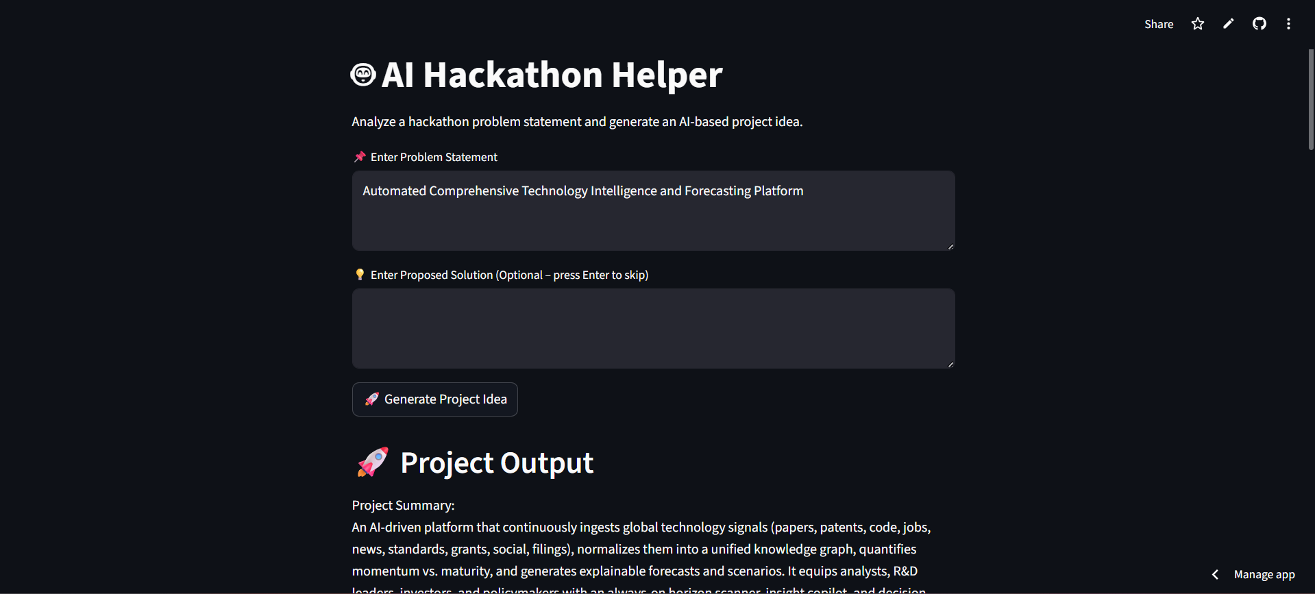 Many students struggle to pick the right hackathon project due to limited time, unclear problem understanding, and lack of AI/ML knowledge. I wanted to create a tool that guides students in real-time, helping them choose innovative and feasible projects quickly.