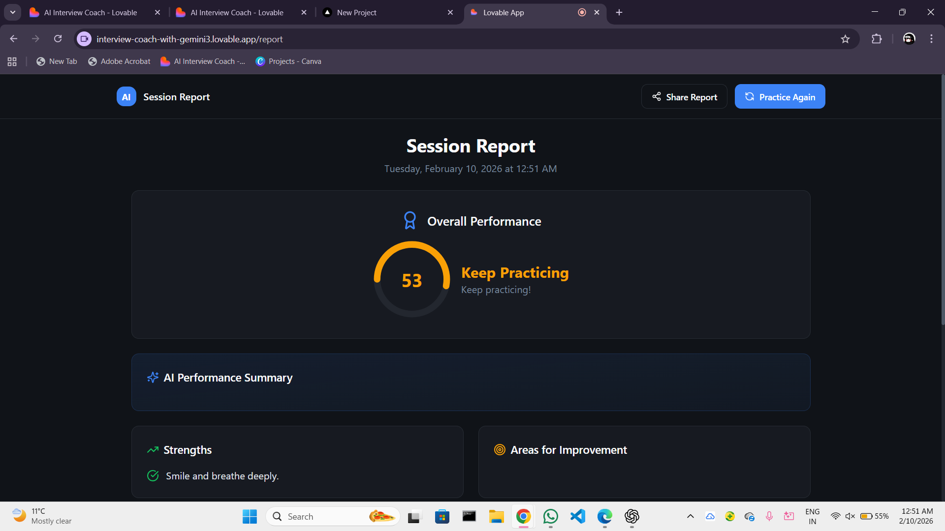 - Implemented AI-based feedback using Gemini
