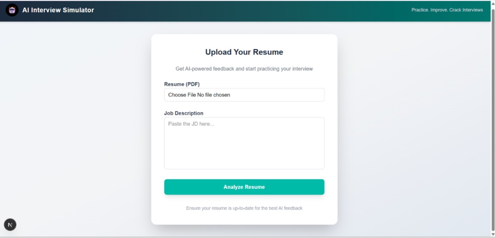 What it does The AI Interview Simulator allows users to: Upload their resume and job description for personalized analysis. Practice answering interview questions with real-time speech recognition. Receive AI-generated feedback and scoring for every answer. Track overall performance with visual progress charts and skill recommendations.