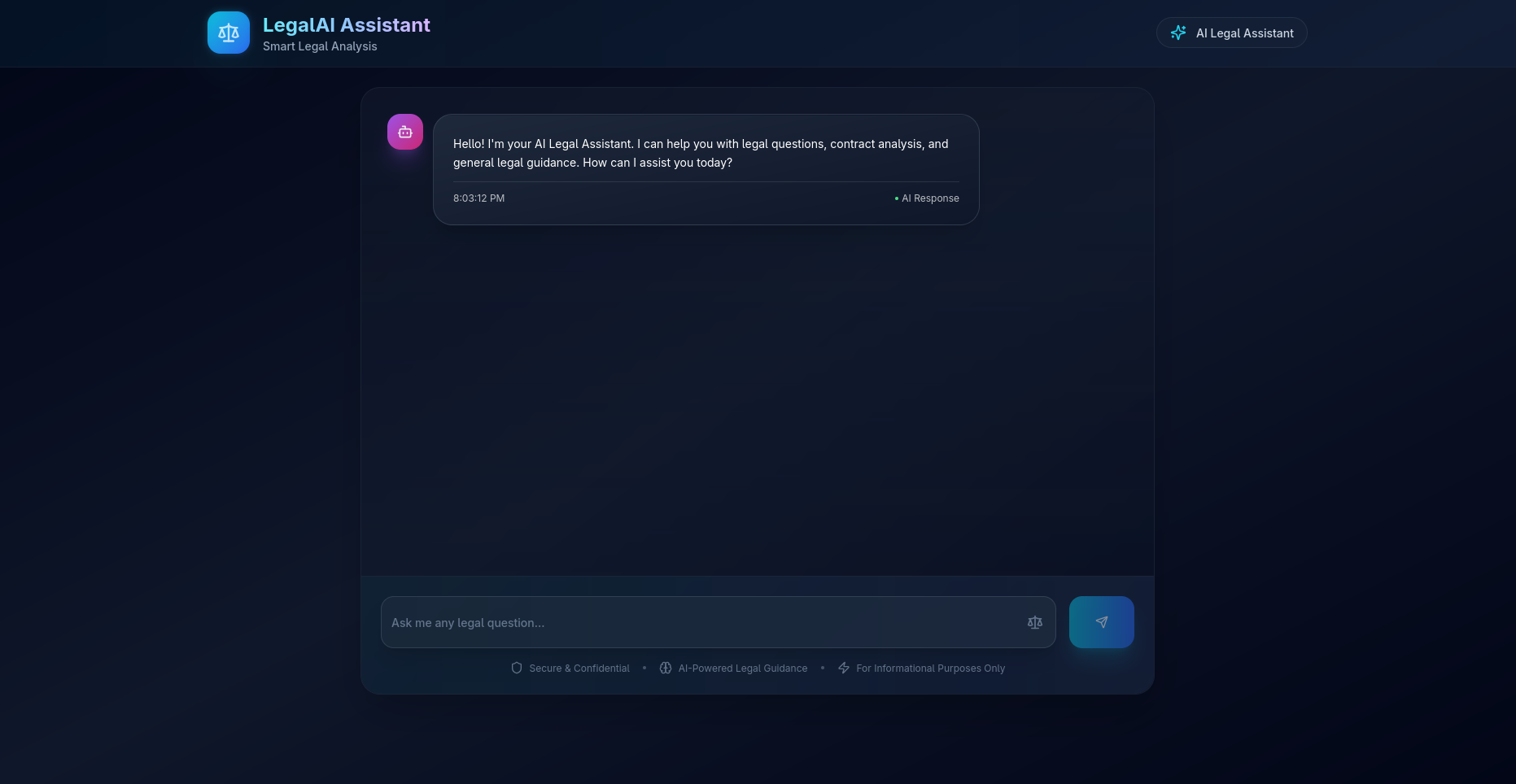 Backend & AI: Integrated with advanced language model APIs to generate legally informed responses.