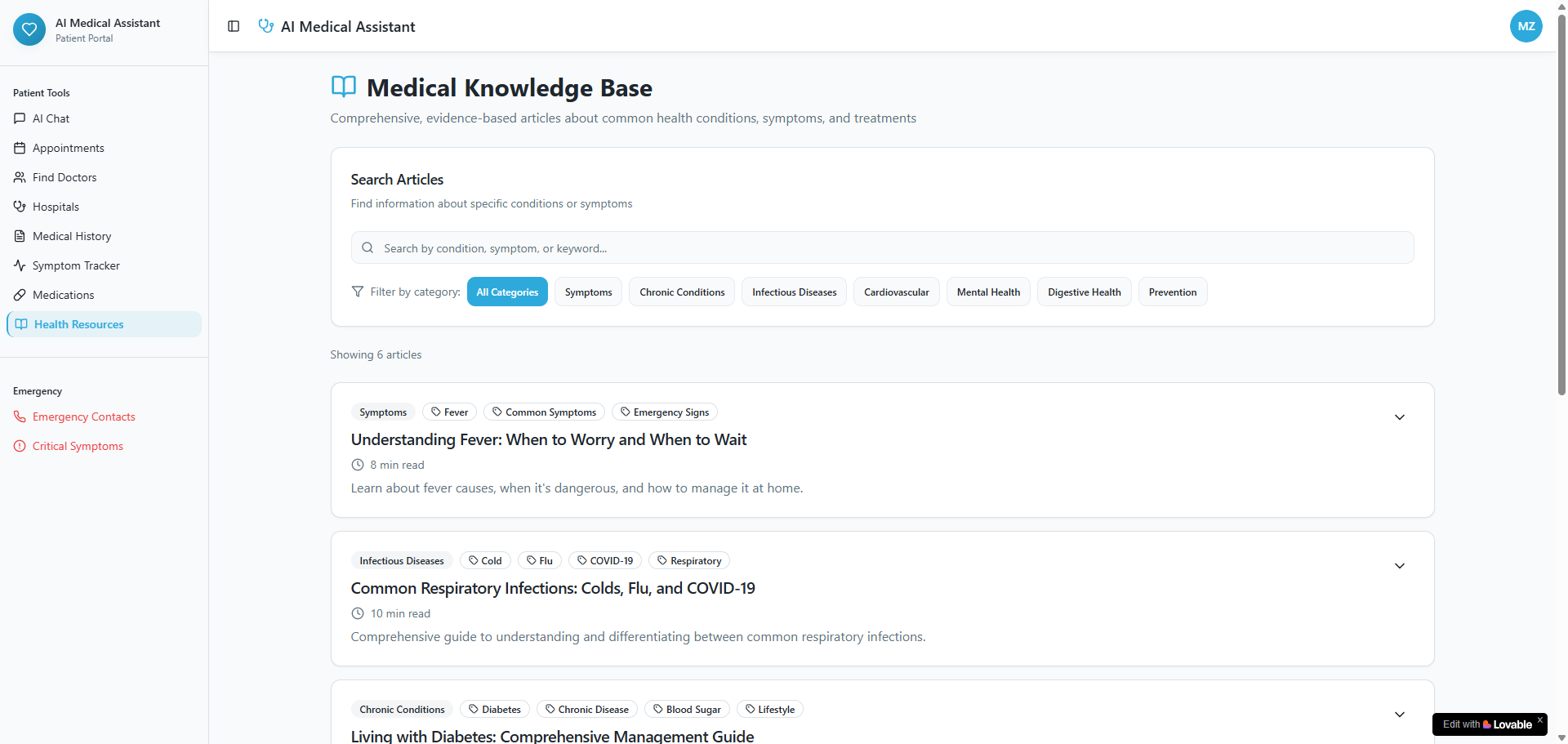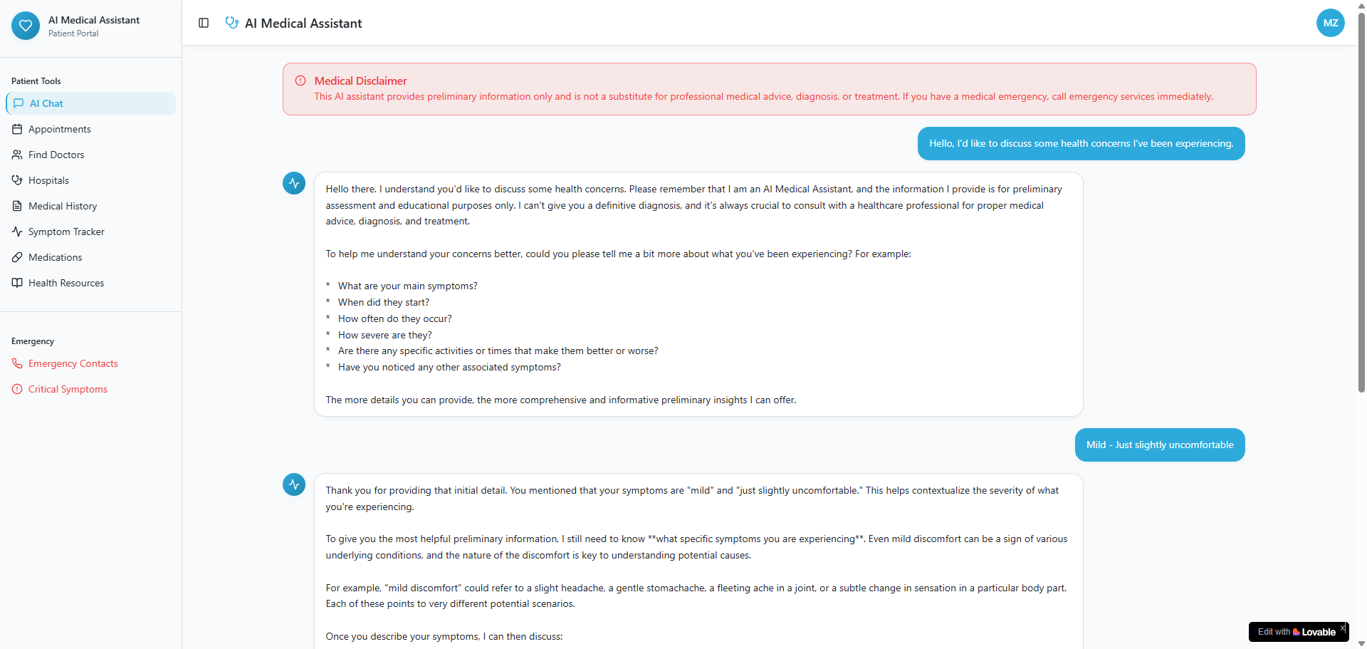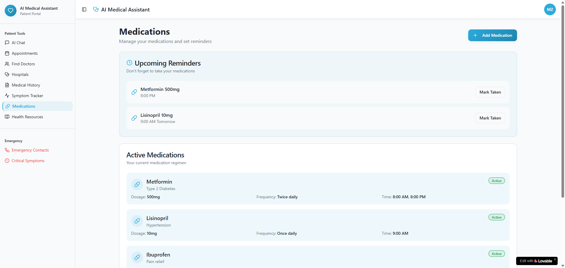The AI Medical Assistant is a comprehensive health management platform that provides: