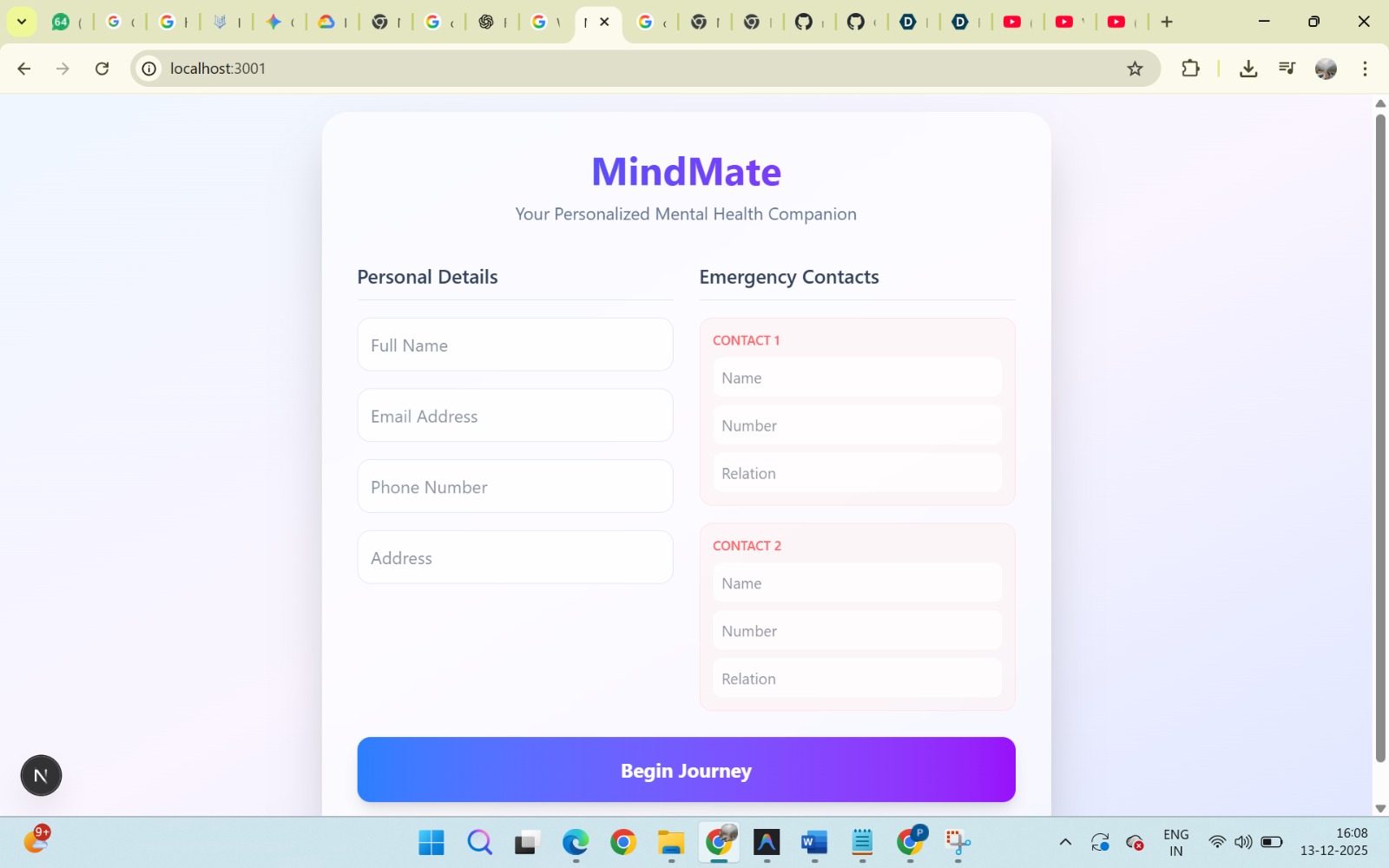 This project taught us how to build responsible AI systems, design user-first experiences, and collaborate effectively under pressure. We gained hands-on experience with AI integration, database design, and the importance of ethics in mental health–focused technology.