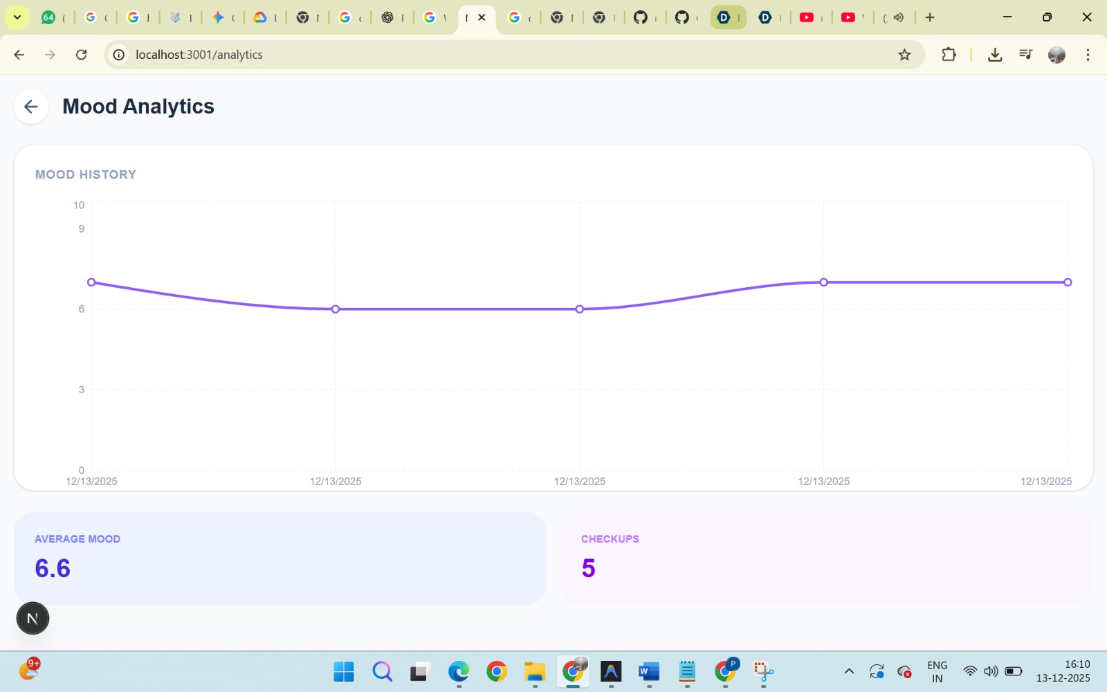 We’re proud of creating a working, end-to-end mental health assistant that balances empathy with responsibility. Building a system that adapts to users over time, securely stores data, and remains easy to use was a major achievement for our team.