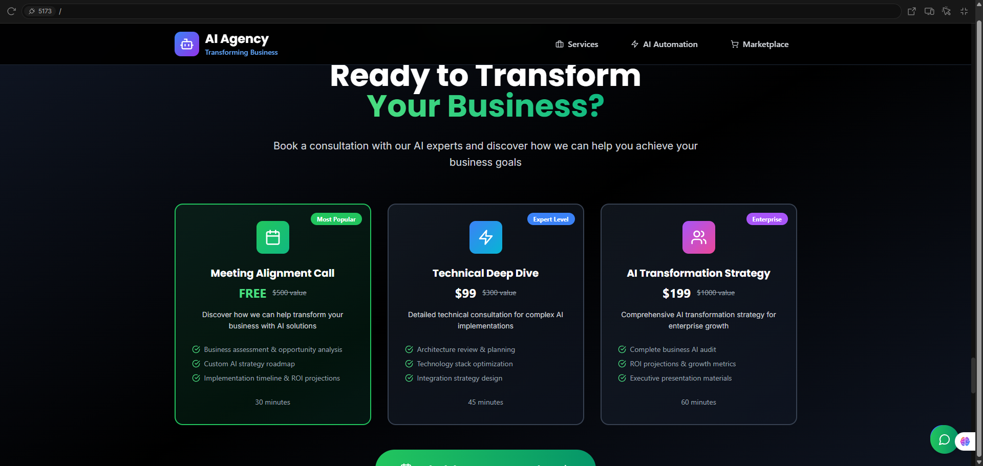 🚀 Inspiration As an AI/ML Engineer, I’ve always wanted to launch a B2B AI agency to help businesses automate tasks and scale faster. I had no funding or team, but I set a personal goal to launch by 01/01/2025. When I discovered the Bolt World’s Largest Hackathon, I saw an opportunity to bring that dream to life — even though only 2 days remained to build something.