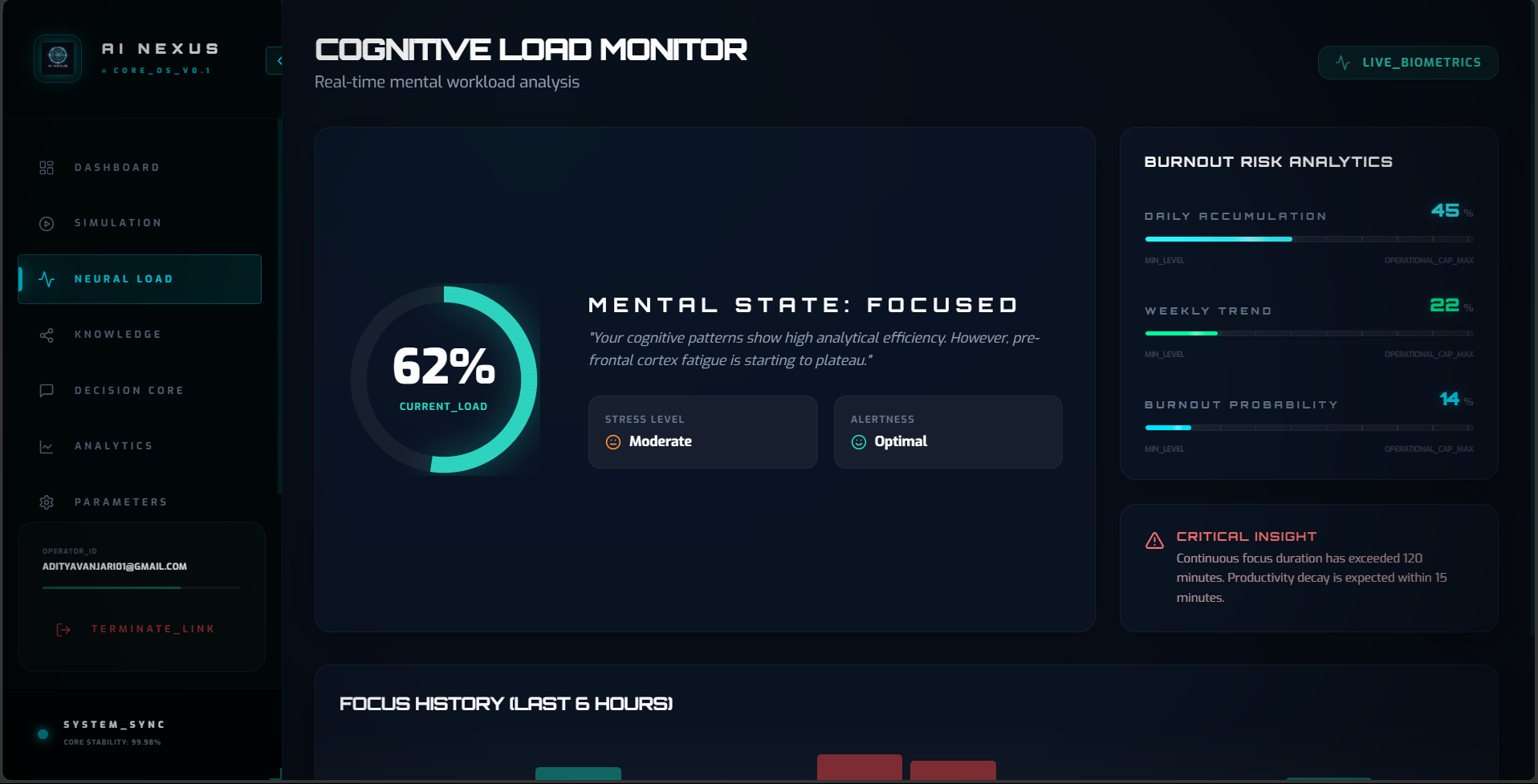 Dashboard Cognitive load visualization AI assistant interface ⚙️ Backend Node.js Express