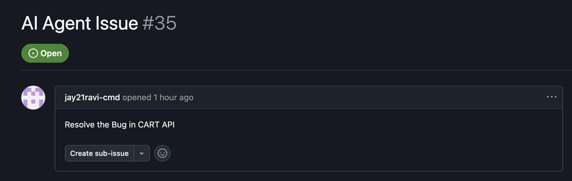 🔹 Create GitHub Issues Enter a repo name and describe the issue. One click. The issue appears on GitHub instantly — no credentials in your code, no manual login.