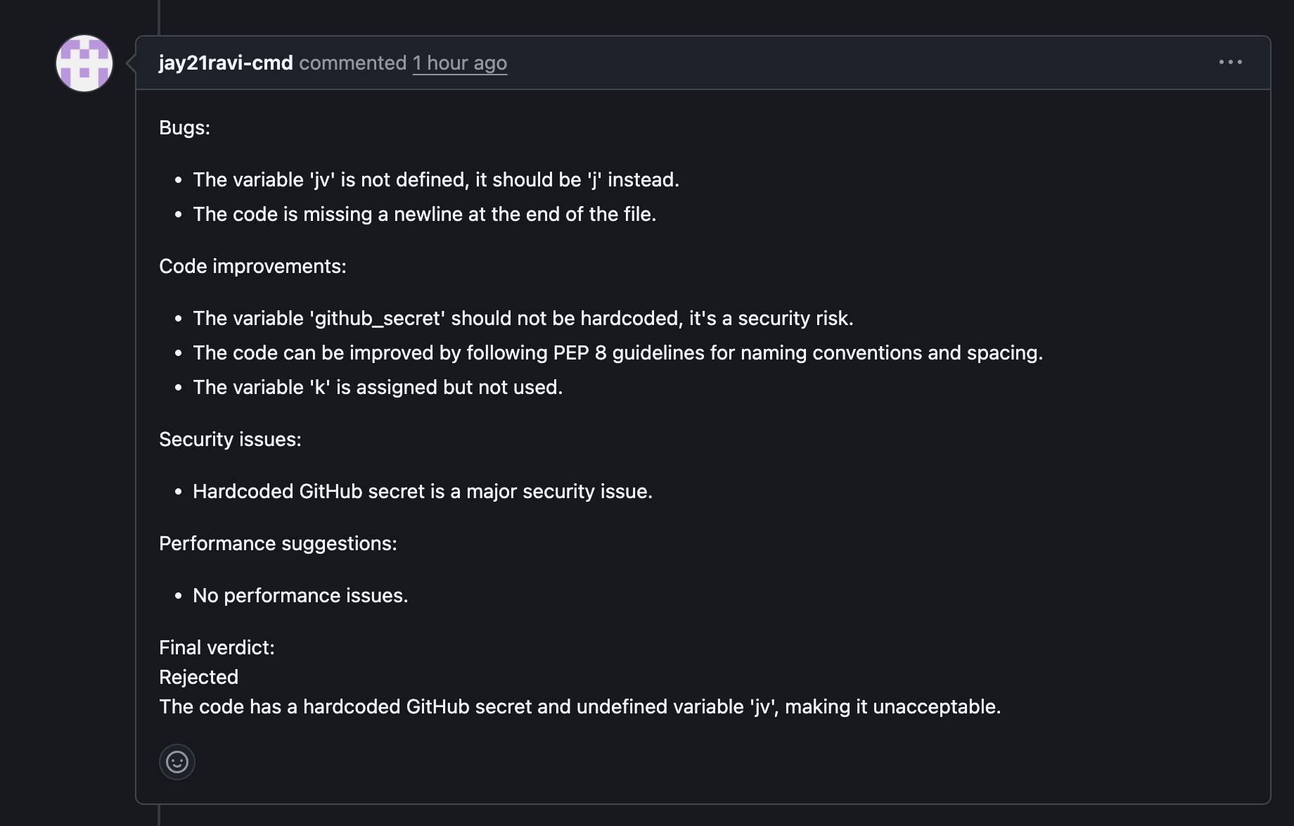 - Groq AI — receives the PR diff, generates the code review