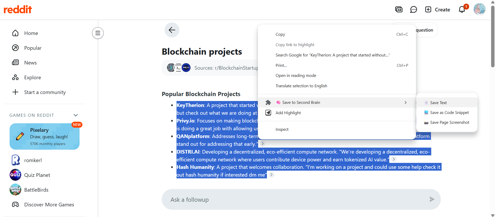 What's next is want to expand its "memory" by adding the ability to save and summarize PDFs and long YouTube videos. Also plan to build a "Knowledge Graph" feature that shows you how your different notes to a topic are connected to each other.