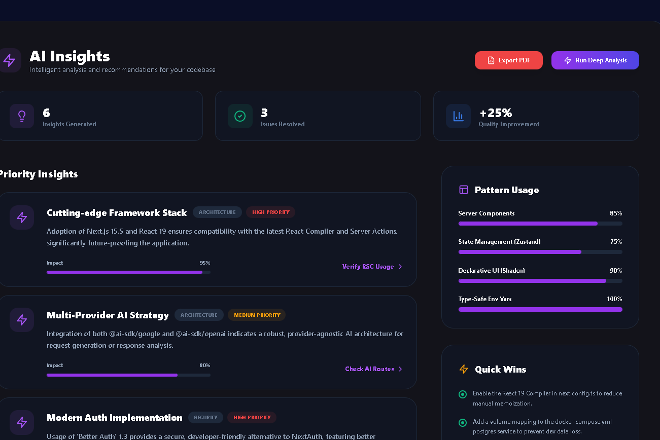 - Deep AI Insights: Uses Google Gemini to perform intelligent code reviews, offering specific refactoring suggestions, performance optimizations, and best practice recommendations.