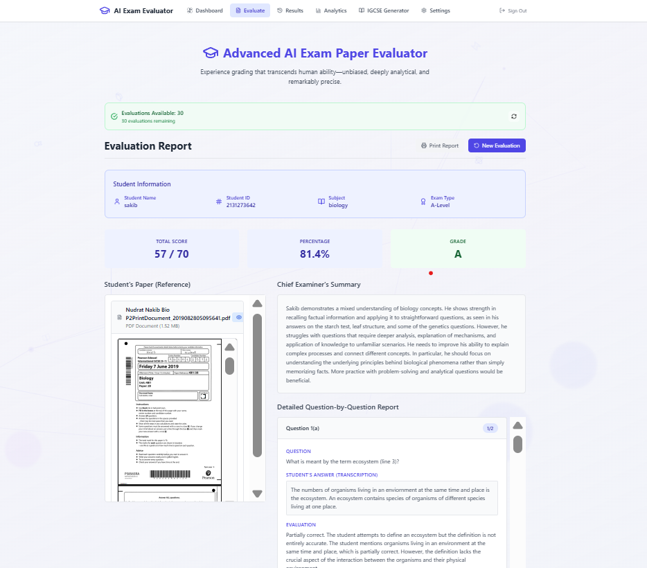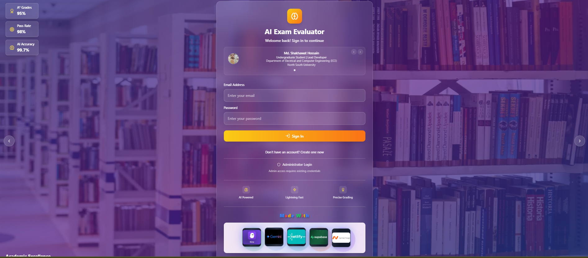 The inspiration for the AI Exam Evaluator came from witnessing the overwhelming burden on students facing biased and unfair grading—and on educators, who spend countless hours manually grading exam papers. During conversations with students and professors, I consistently heard the same issues: evaluation consistency, biased grading, and a lack of detailed feedback—different graders might score the same paper differently, and producing comprehensive comments is time-consuming. That’s why I built an AI‑powered solution to keep grading consistent and unbiased while delivering detailed, constructive feedback that helps students improve—and gives educators their time back.
