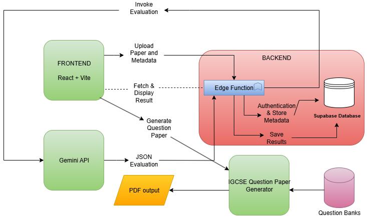 • AI Core: Using the Gemini 2.0 flash large language model by calling it to check the paper, giving Mark an overall grade, and providing intelligent feedback.