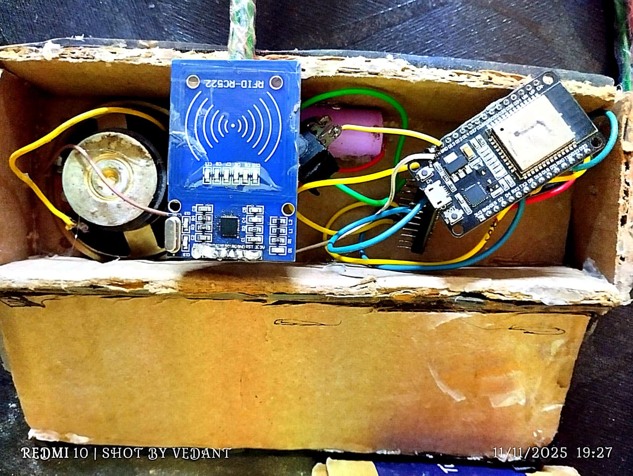 The Interaction Node: Built on a standard ESP32 Dev Module. It manages the RFID (RC522) input for structured learning and the DFPlayer Mini for audio output.