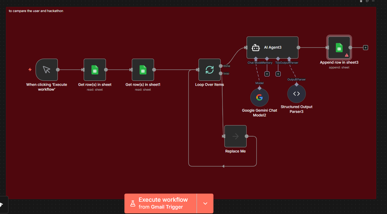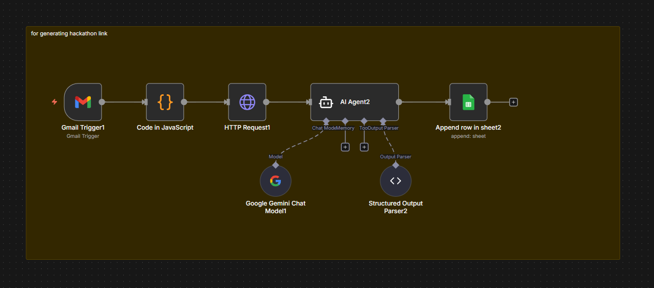 AI workflow that extracts hackathon details from links and analyzes requirements.
