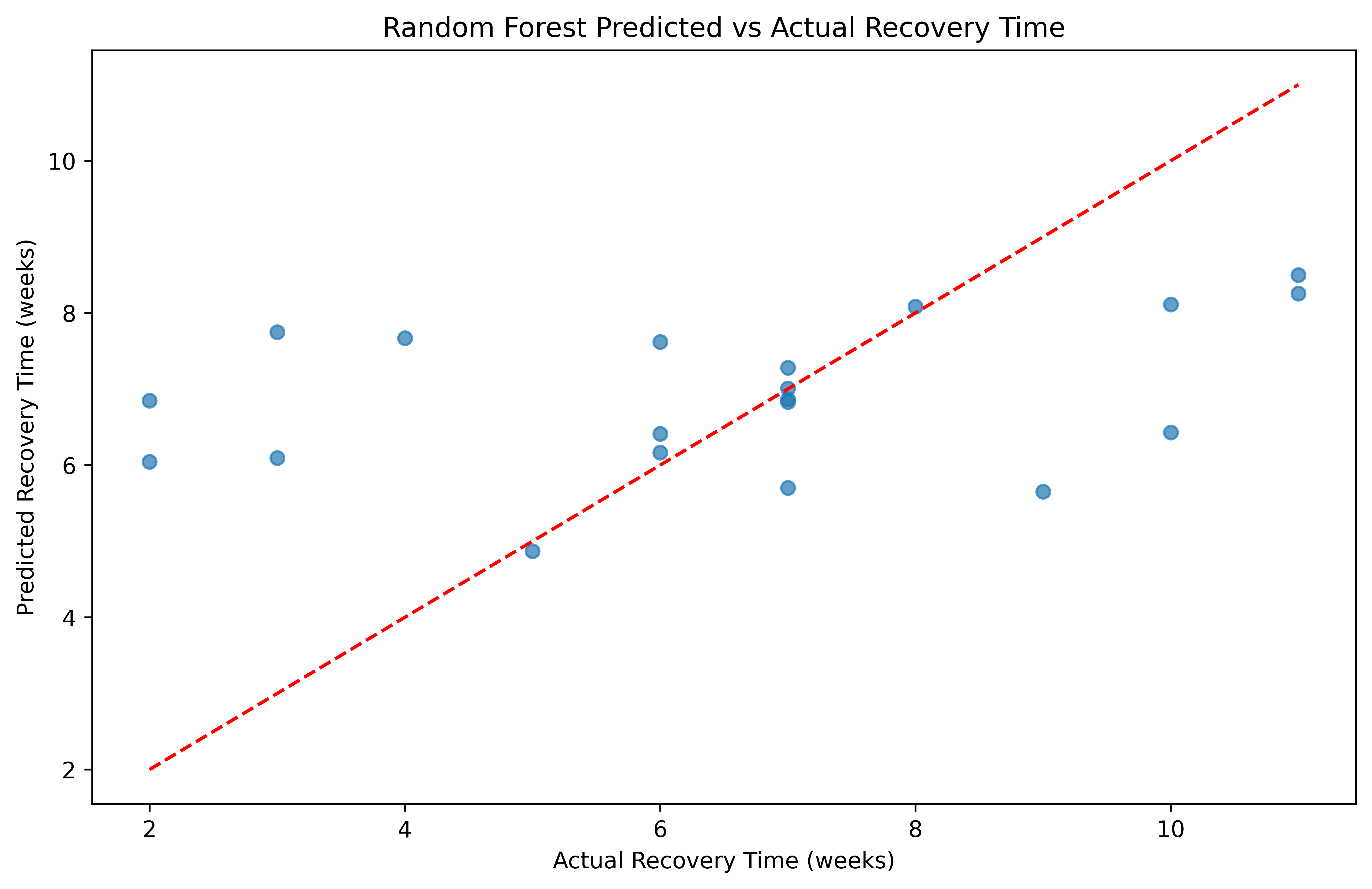 Predicted Vs. Actual Recovery Time using Random Forest Regression