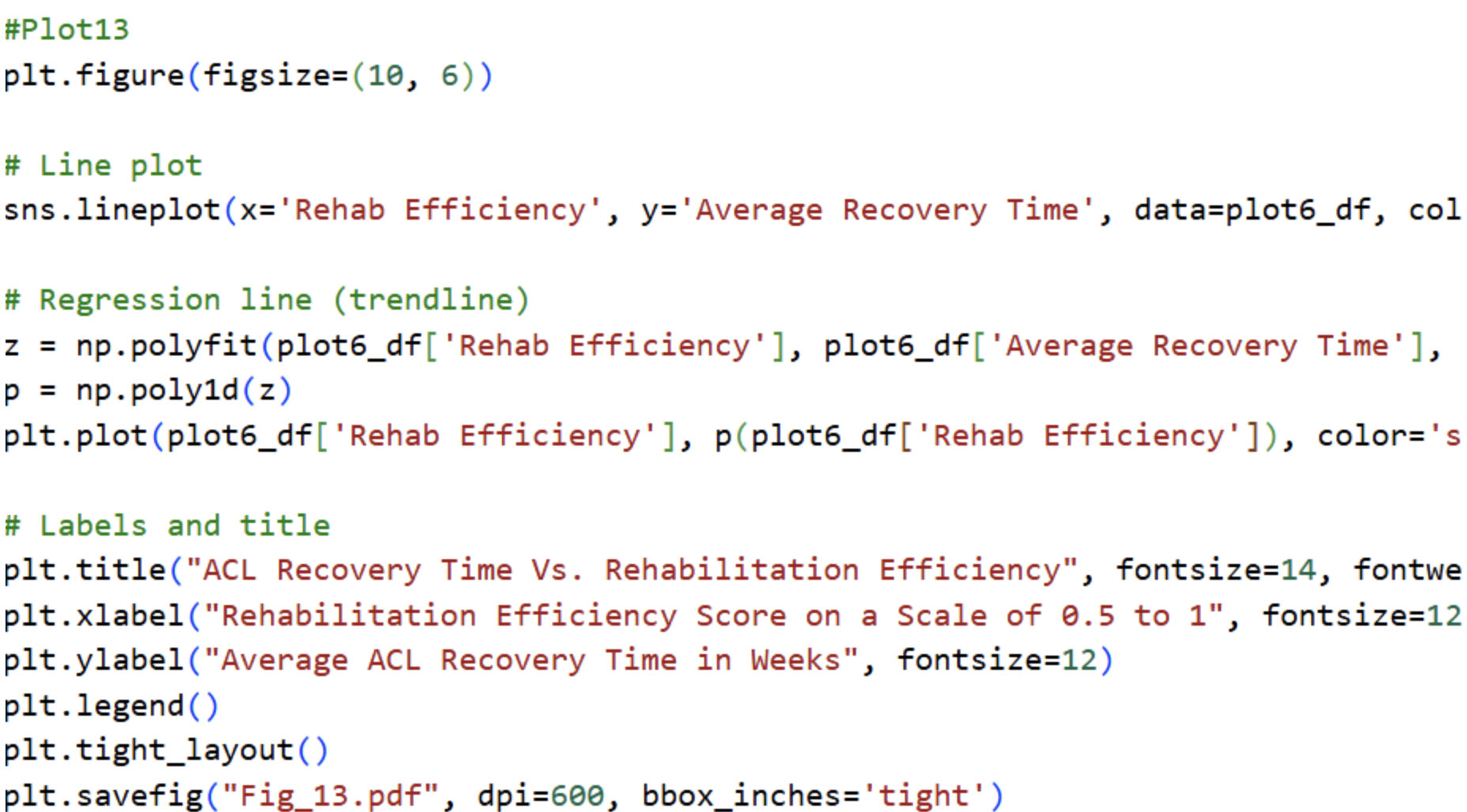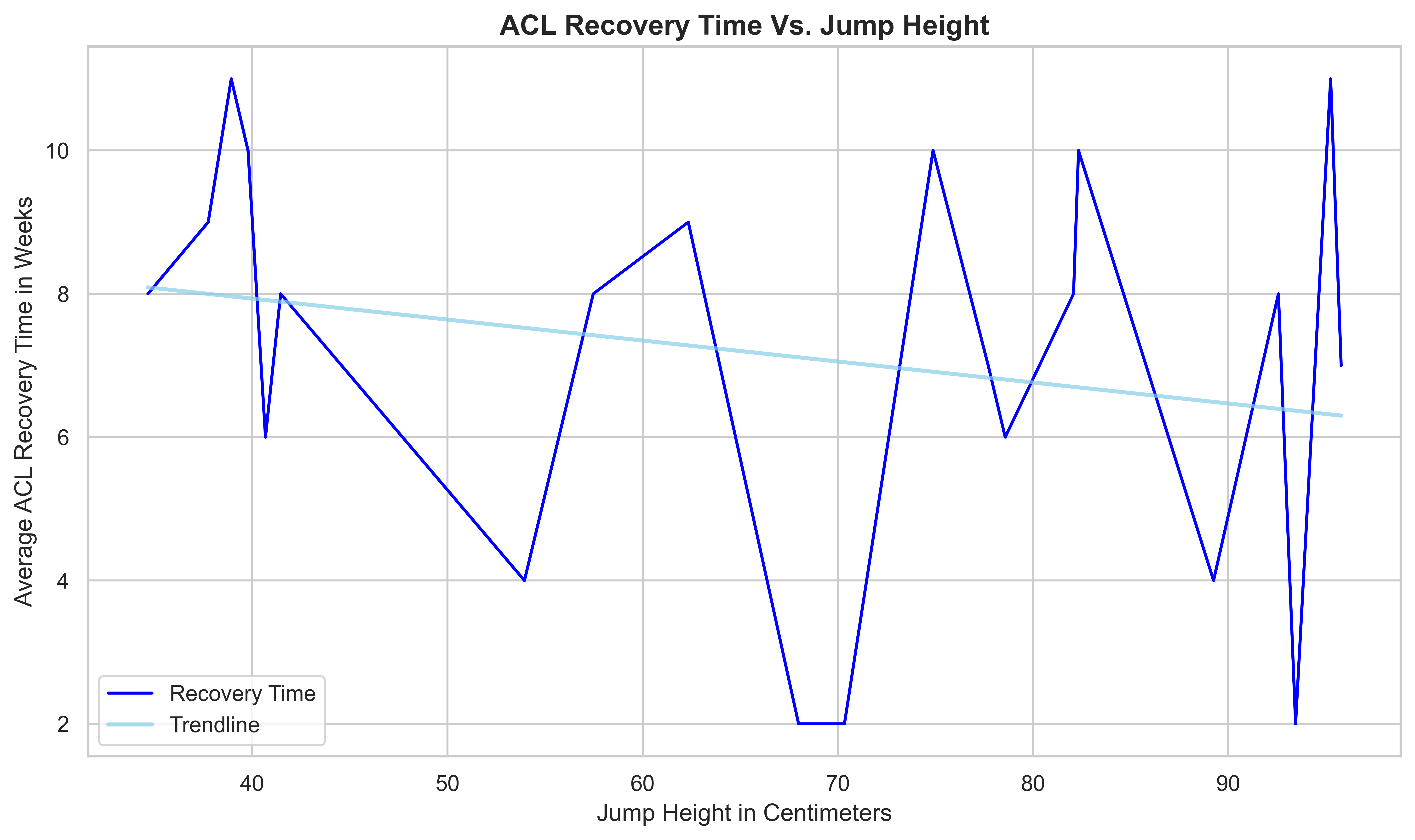 Example of Python Plotting (Line Graph - ACL Recovery Time Vs. Jump Height)