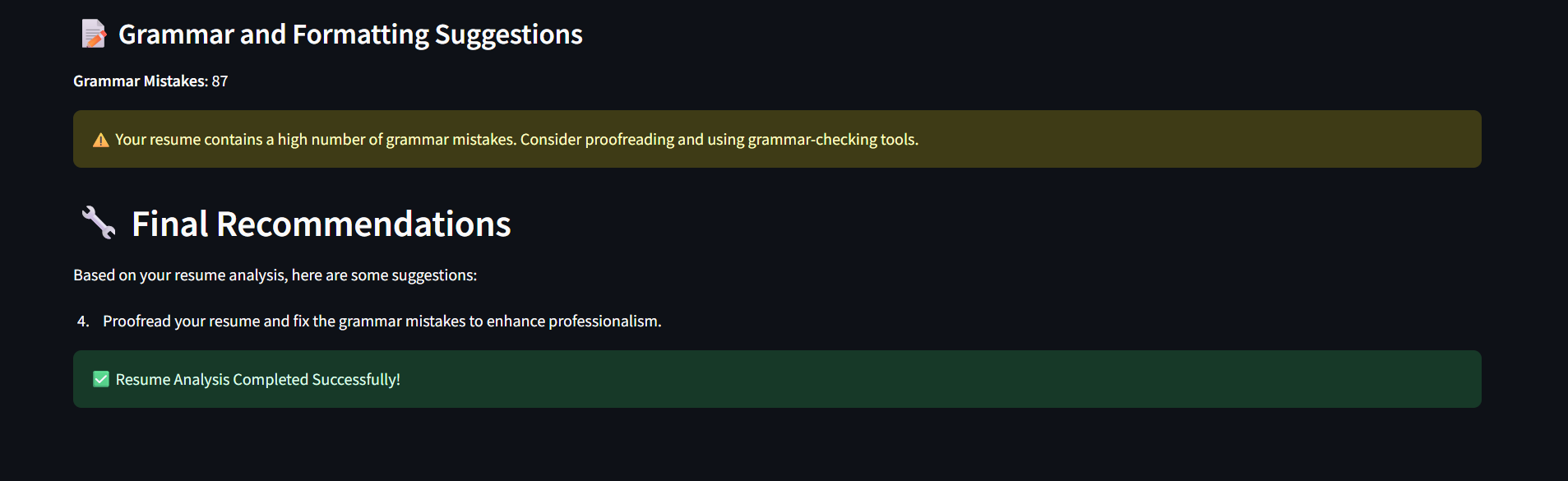 Grammar checks were slow on large resumes. I had to optimize by reducing token windows and summarizing checks to key sentences.