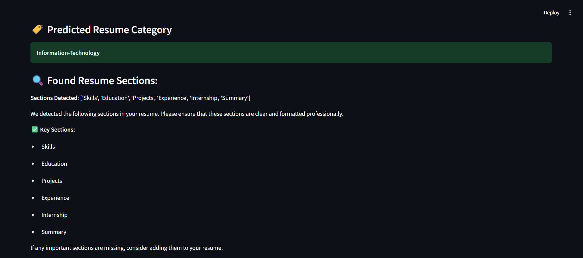 .pdfresume via Streamlit. - Text Extraction: We extract clean text from the resume using