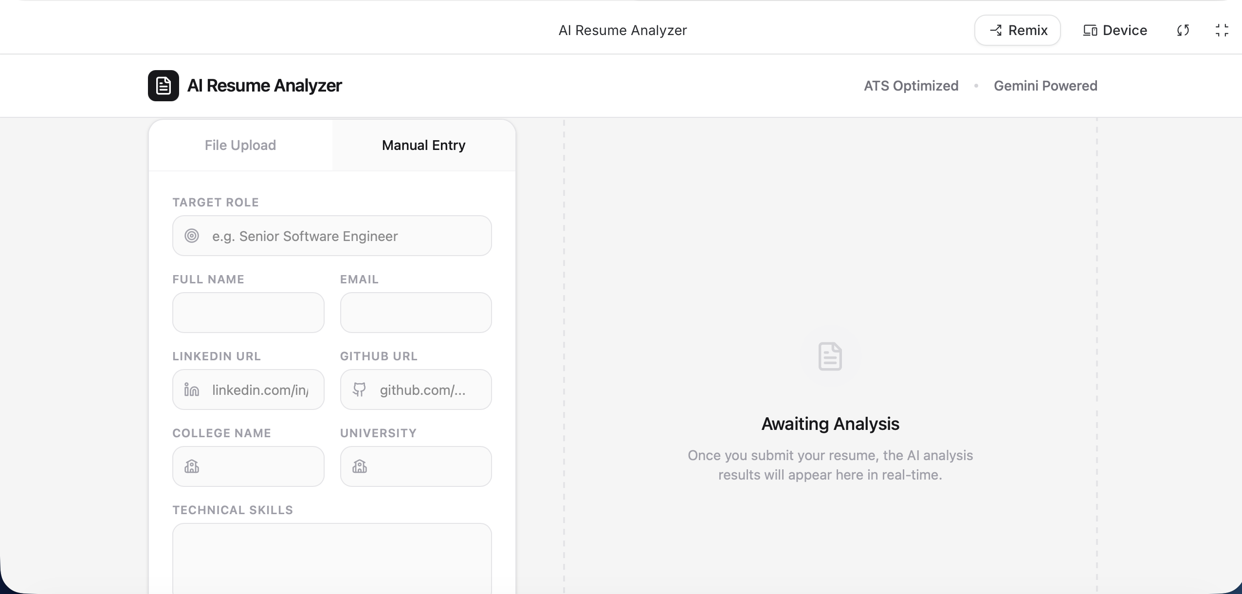 Many students and job seekers struggle to create resumes that pass company screening systems. Most companies use AI-based Applicant Tracking Systems (ATS) to filter resumes before a recruiter sees them. Because of this, many good candidates get rejected due to missing keywords or poor formatting. This problem inspired me to build an AI Resume Analyzer that helps users improve their resumes by analyzing skills, keywords, and formatting. What the Project Does The AI Resume Analyzer allows users to upload their resume and receive instant feedback. The system analyzes the resume and provides: Resume score based on quality and keywords Skill detection from the resume Suggestions for improvement Keyword optimization for ATS systems Job role matching recommendations This helps users improve their resume and increase their chances of getting shortlisted for jobs. How I Built the Project I built this project using programming and AI tools. The system reads the resume file, extracts the text, and analyzes it using AI techniques. Main technologies used: Python for backend logic Natural Language Processing (NLP) to analyze resume text Machine Learning / AI models to detect skills and keywords A simple web interface where users upload their resume The workflow of the system is: User uploads resume (PDF or DOCX) System extracts text from the resume AI analyzes skills, keywords, and structure The system generates a resume score Suggestions are displayed to improve the resume Challenges I Faced While building this project, I faced several challenges: Extracting accurate text from PDF resumes Identifying relevant skills and keywords Designing a clear and simple user interface Making the analysis fast and useful for users By solving these challenges, I learned more about AI, NLP, and software development. What I Learned Through this project, I learned: How AI can analyze text data Basics of Natural Language Processing How resume screening works in companies How to design a practical AI-based solution to solve a real-world problem This project shows how AI can assist job seekers by improving their resumes and helping them prepare for job opportunities.