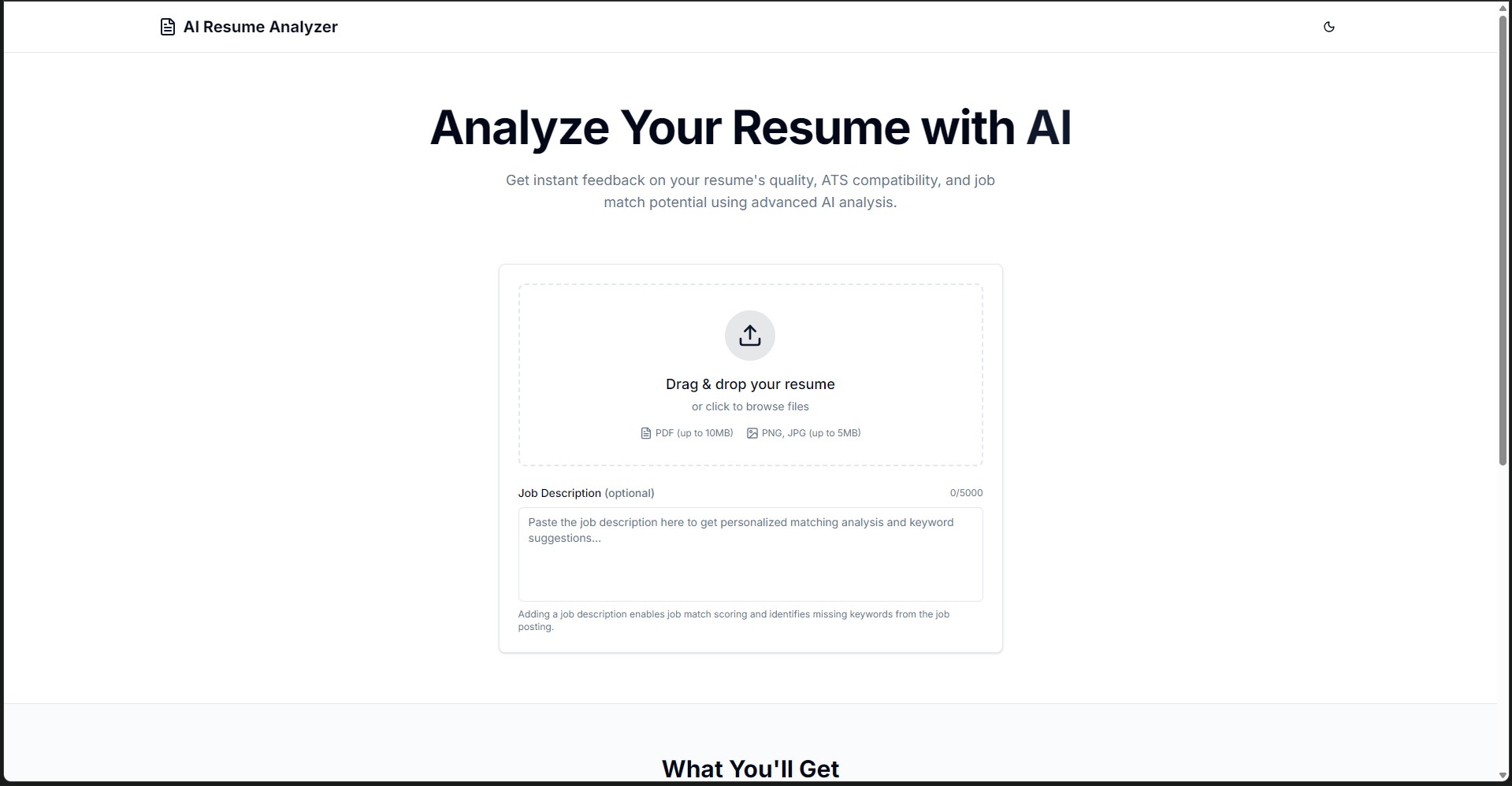 - Universal Upload: Users can upload resumes in PDF or image (PNG/JPG) formats.