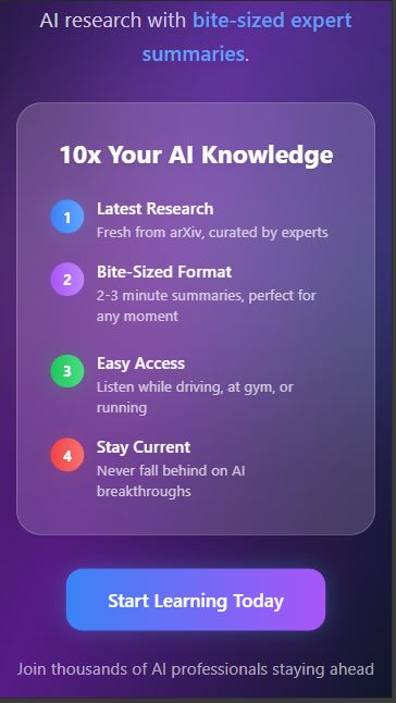 As a working professional passionate about AI, I struggled to find the time to stay updated with cutting-edge research. Reading lengthy AI papers or watching detailed YouTube videos wasn't feasible with my busy schedule. I needed a quick, convenient way to consume the latest AI advancements without disrupting my daily routine.