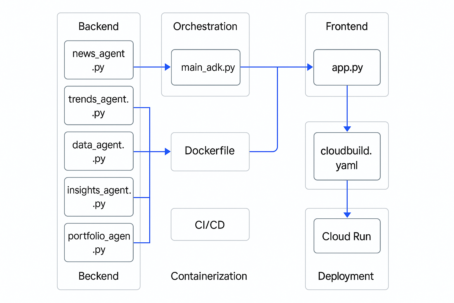 We designed the UI using Streamlit with an emphasis on clarity and responsiveness. The agents communicate through structured prompts and lightweight APIs. We deployed the app on Google Cloud Run with CI/CD using Cloud Build.