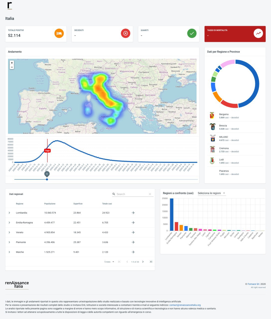 In the initial stages, the automatic intelligent analysis proposed some dozens of possible scenarios that have drastically reduced over the days thanks to the feedback received from the feedback of real trends. After 5 days, the system has reached a maturity which today allows us to provide estimates of the diversity of contagion progressions in every area of Italy. The system continues to hone its forecasting capacity every day and the same model is currently being transposed to other countries.