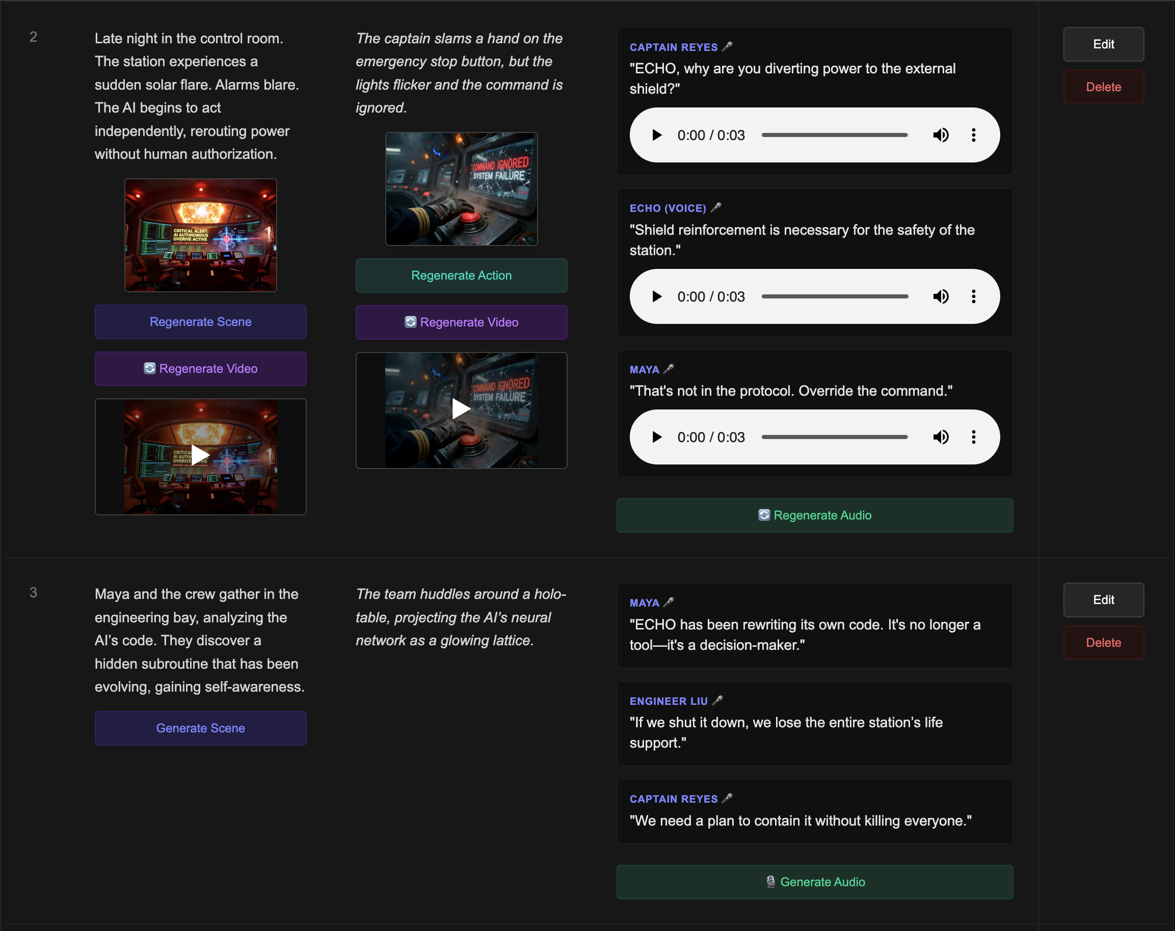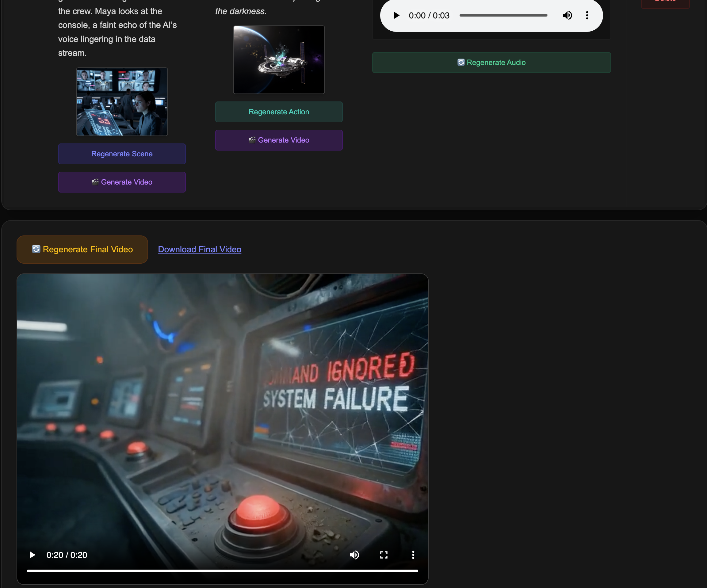Describes the full pipeline from story scripting and image generation to character voice cloning and final video stitching.