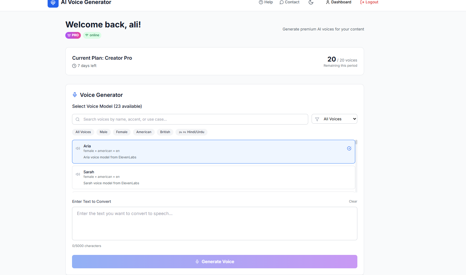 This project,## AI Voice Generator, was inspired by the growing demand for high-quality, realistic voice synthesis for applications like content creation, accessibility tools, and language learning. I wanted to create a simple yet powerful web app that allows users to generate lifelike voices in just a few clicks.