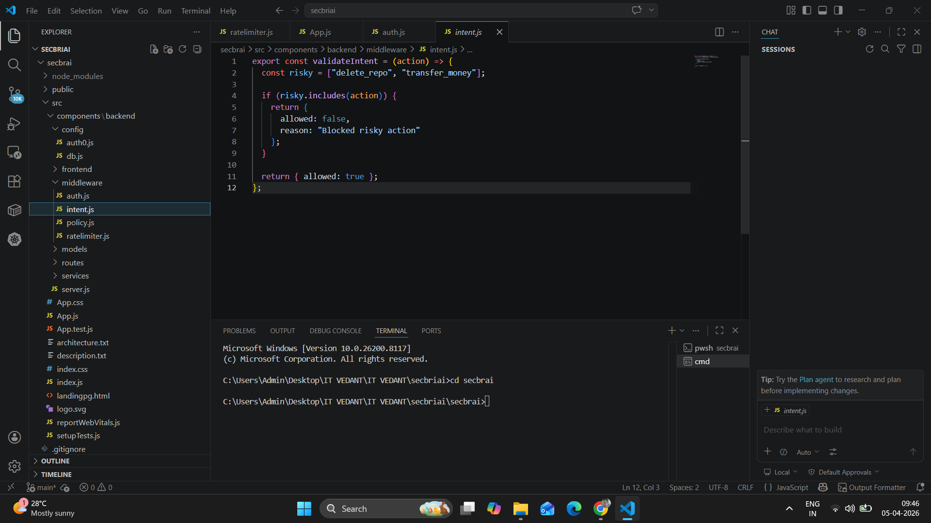 - Designing the Architecture I started by designing a secure gateway model where: AI agents do not directly access APIs All requests pass through a controlled backend layer (SecureBridge),2. Backend Development (Core System) I developed the SecureBridge Gateway using Node.js and Express:Created REST APIs to handle AI requests,API Communication Layer-I implemented a module that:Fetches tokens from Auth0,Calls external APIs (e.g., GitHub, SaaS services),Returns responses back to the AI,Built a policy engine to validate permissions ## Challenges we ran into Secure Token Management-One of the biggest challenges was ensuring that API tokens were never exposed.I had to carefully design the system so that credentials were not stored locally ,Integrating Auth0 Token Vault required understanding OAuth flows and secure token handling