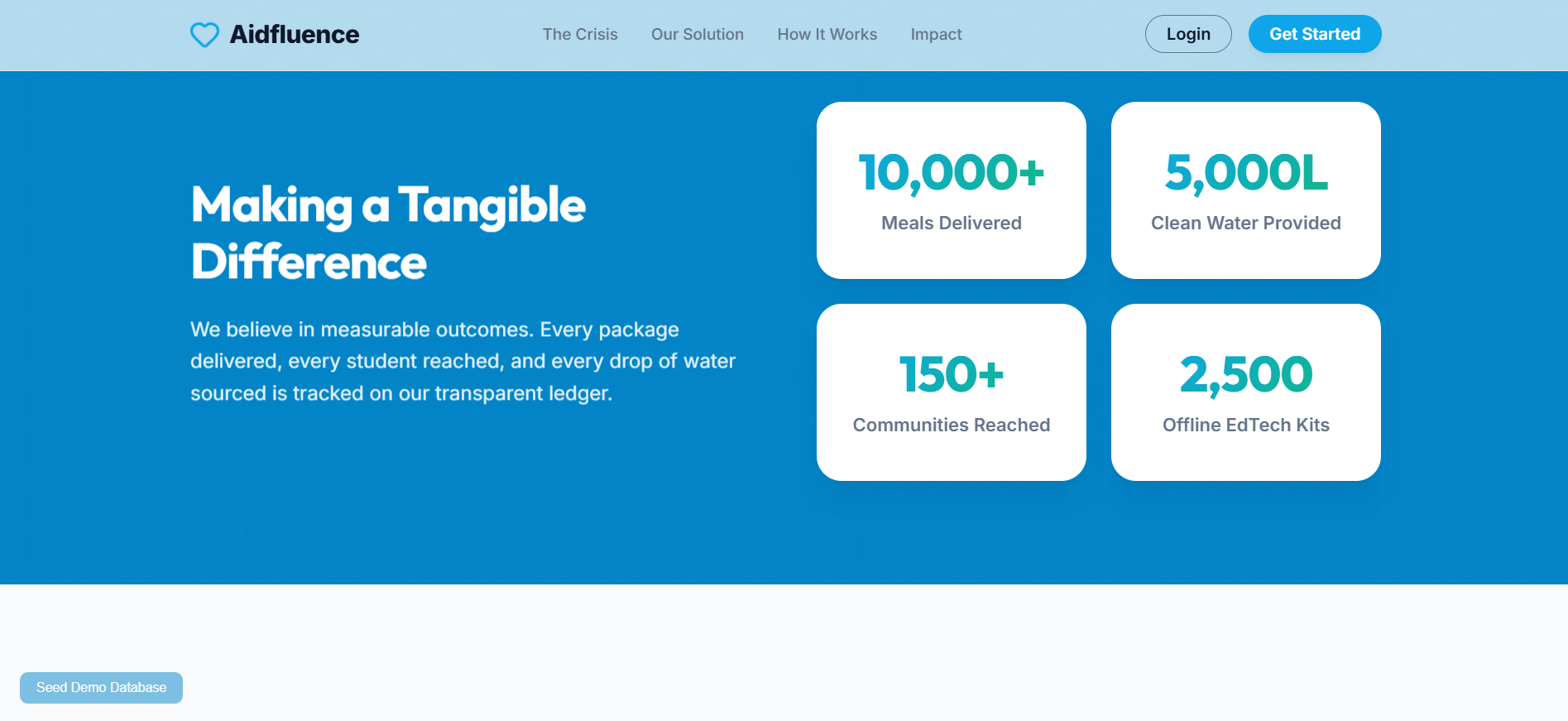 Aidfluence was inspired by a simple but urgent reality: millions of people around the world lack access to basic necessities like clean water, food, and education. While resources exist, they’re often misallocated due to lack of real-time data and coordination. We wanted to bridge that gap by combining technology and human collaboration—using data not just to understand problems, but to actively solve them where it matters most.