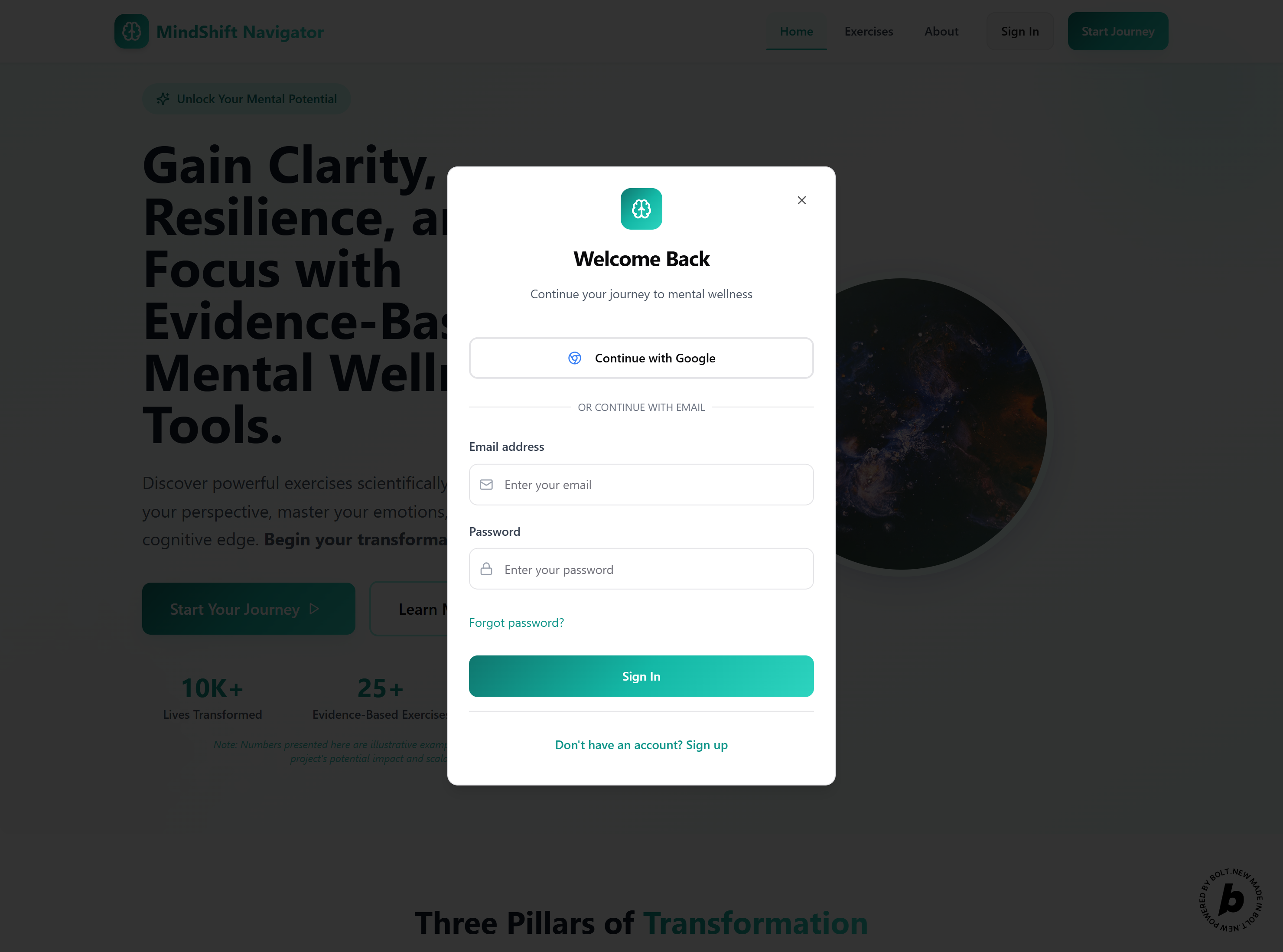 MindShift Navigator offers a "map" for this internal journey. It's a platform that guides users through a series of carefully crafted questions and exercises designed to: