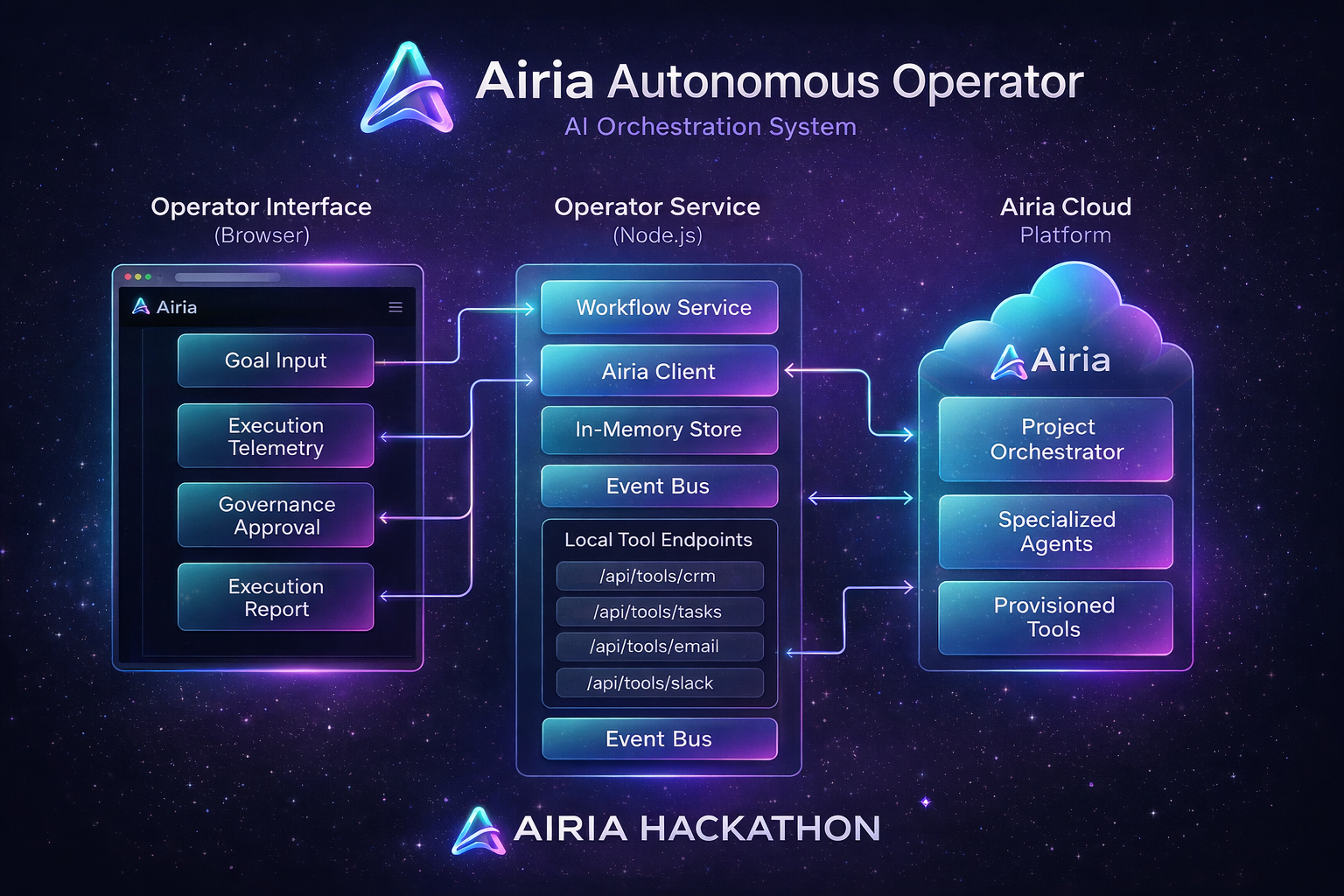- TypeScript: Ensures type-safe operational logic and robust integration with the Airia Cloud API.