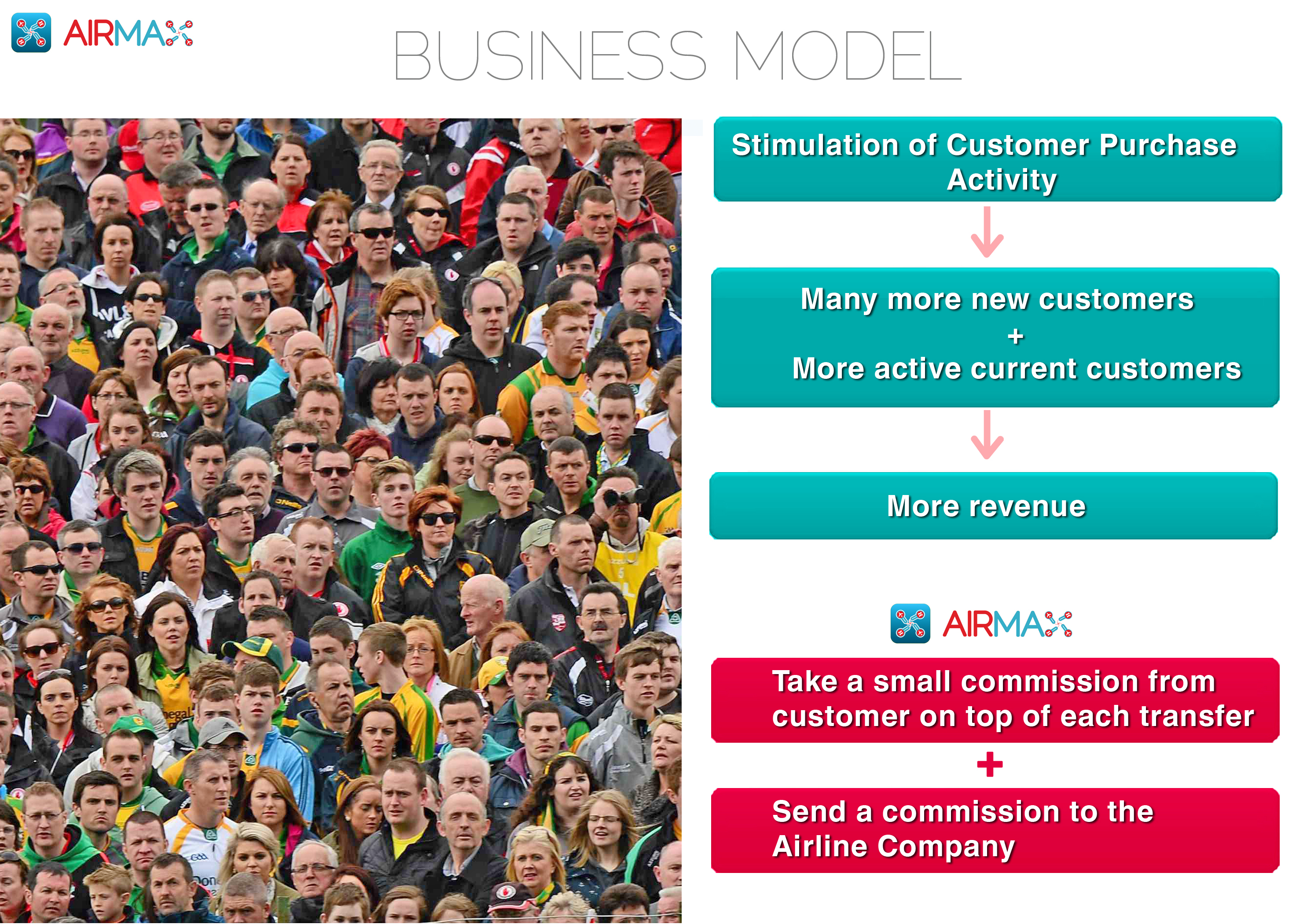 Our goal is to generate a product of RADICAL CHANGE (not incremental one). Therefore we suggest to the Airline companies a possible cooperation with AIRMAX, that will generate great yields for both businesses and consumers on a new level.